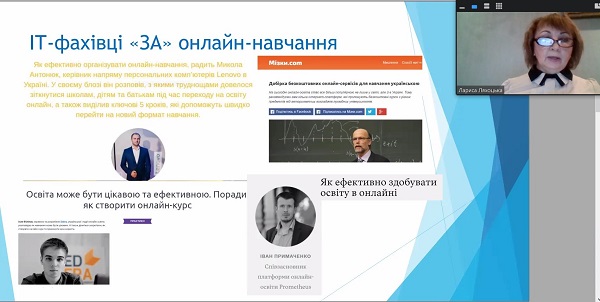На заході виступили науковці: професор ННІНО НАУ Юрій Тесля; доценти кафедри відкритих освітніх систем та ІКТ, ДЗВО «Університет менеджменту освіти НАПН України» - Сергій Касьян, Лариса Ляхоцька, Наталія Гущина.
