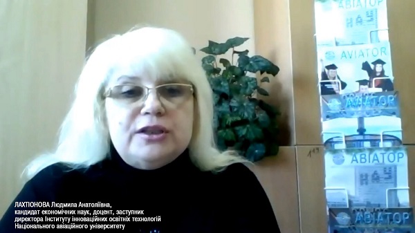Освітні, наукові та профорієнтаційні проєкти Національного авіаційного університету презентувала Людмила Куделя, директор Центру обдарованої учнівської молоді ІІОТ НАУ.