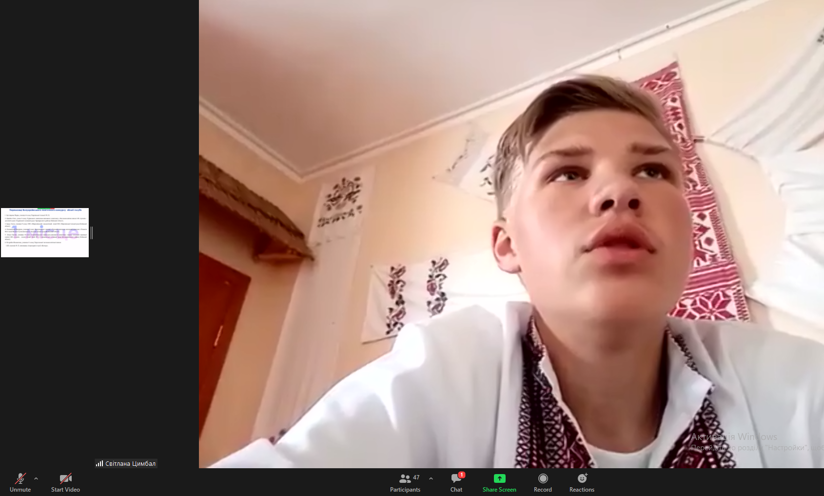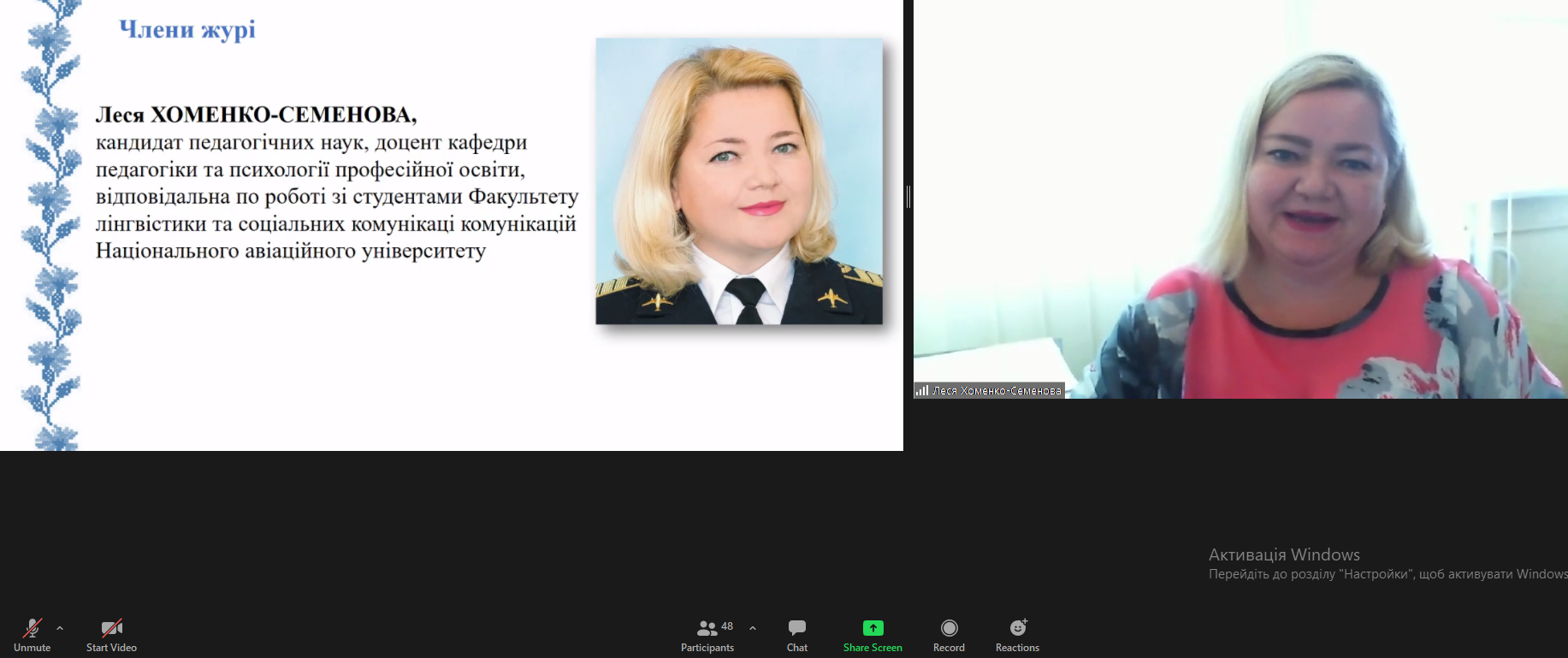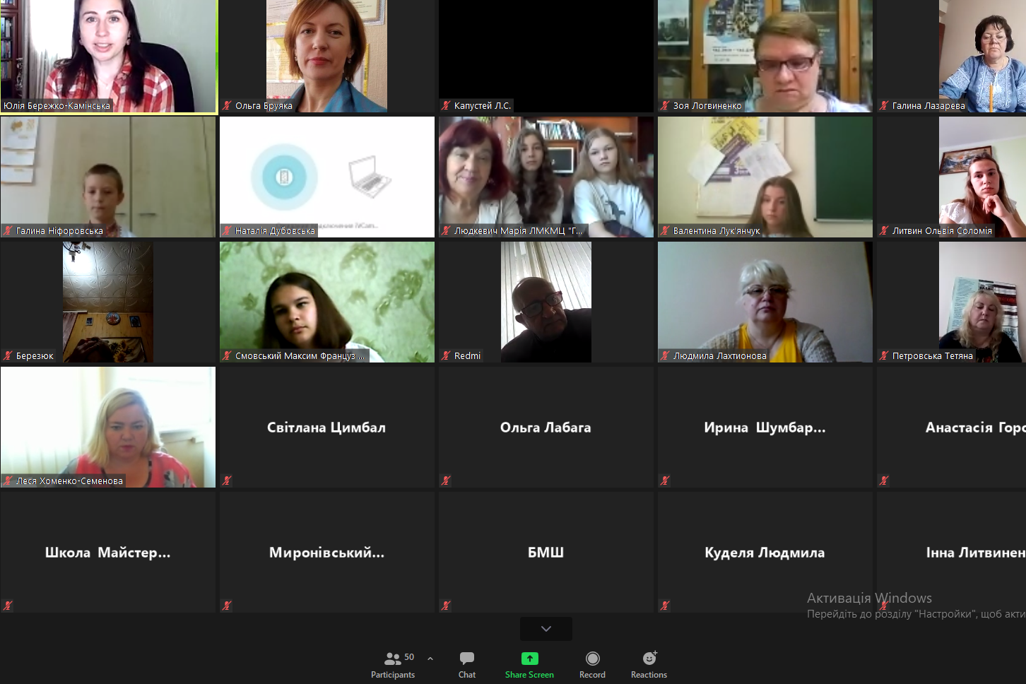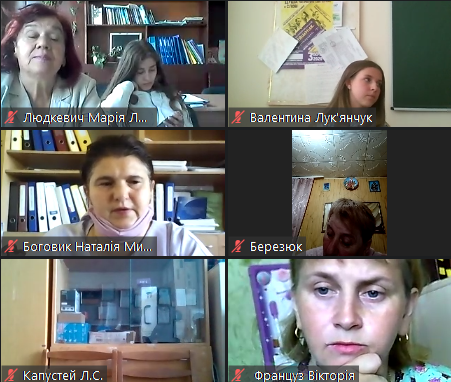 Захоплено слухали учасники відеоконференції виступ Ю.М. Бережко-Камінської, секретаря Національної спілки письменників України по роботі з молоддю, письменницю і журналістку, переможця багатьох міжнародних та національних літературних конкурсів.