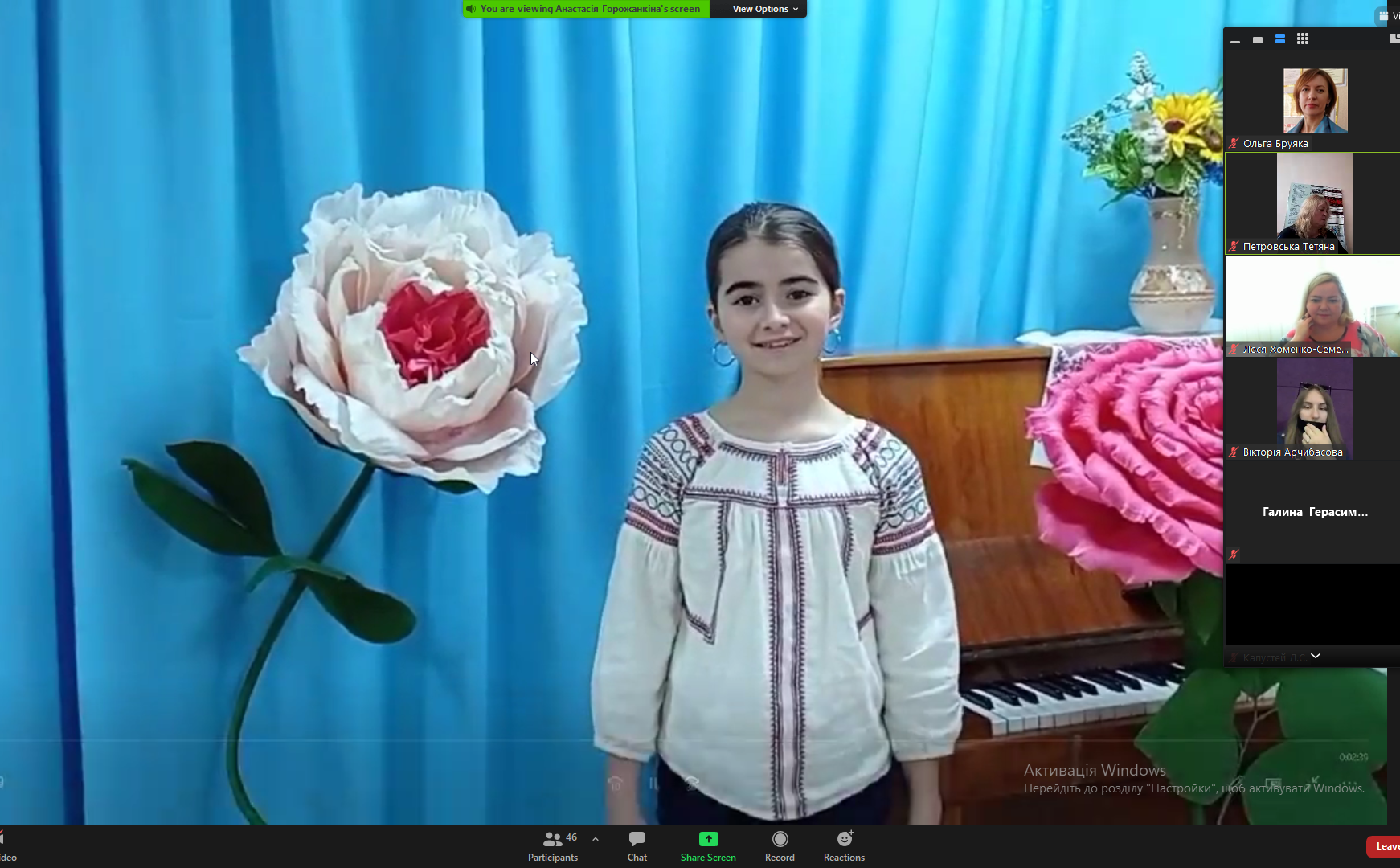 Окрасою літературно-мистецького свята стали музичні відеовиступи Борщагівської мистецької школи Бучанського району Київської області (директор М.О.Лук’яненко): Софії Шайхулліної і викладача Ірини Левченко (виконання на бандурі), Євдокії Капелюхи – лауреата обласних та Всеукраїнських конкурсів та Владислава Федорчука, лауреата міжнародних та Всеукраїнських конкурсів, вихованця дитячого хору «Сходинки» Софіївсько-Борщагівського НВК (керівник Ірина Якубовська, заслужений працівник культури України). Під час відеоконференції прозвучала пісня «Білий голуб» у виконанні Віктора Кавуна, заслуженого артиста України (сл. Т.Петровської, муз. Ю.Васильківського).
