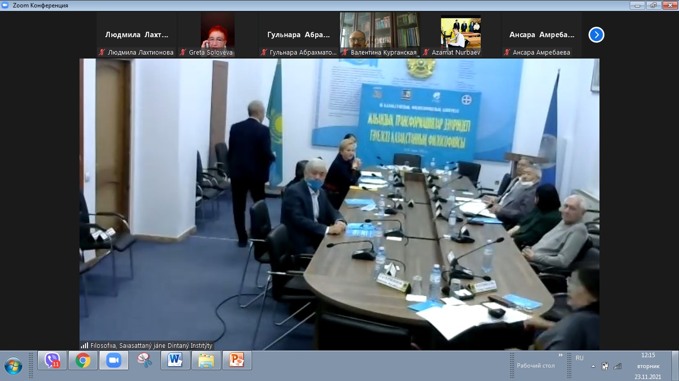 23-24 листопада 2021 р. за сприянням Казахстанського громадського об'єднання «Філософський Конгрес» в Інституті філософії, політології та релігієзнавства Комітету науки Міністерства освіти та науки Республіки Казахстан в режимі офлайн і онлайн відбувся ІІІ Казахстанський філософський конгрес «Філософія незалежного Казахстану в епоху глобальних трансформацій», присвячений 30-річчю незалежності Республіки Казахстан. На пленарному засіданні йшлося про основні завдання та напрями сучасної філософії, особливості та культурне значення казахської філософії, актуальність філософії в освітньому процесі, необхідність філософської компаративістики, соціальне пізнання в епоху сучасних глобальних проблем та інші найважливіші філософські та соціально-культурні теми.