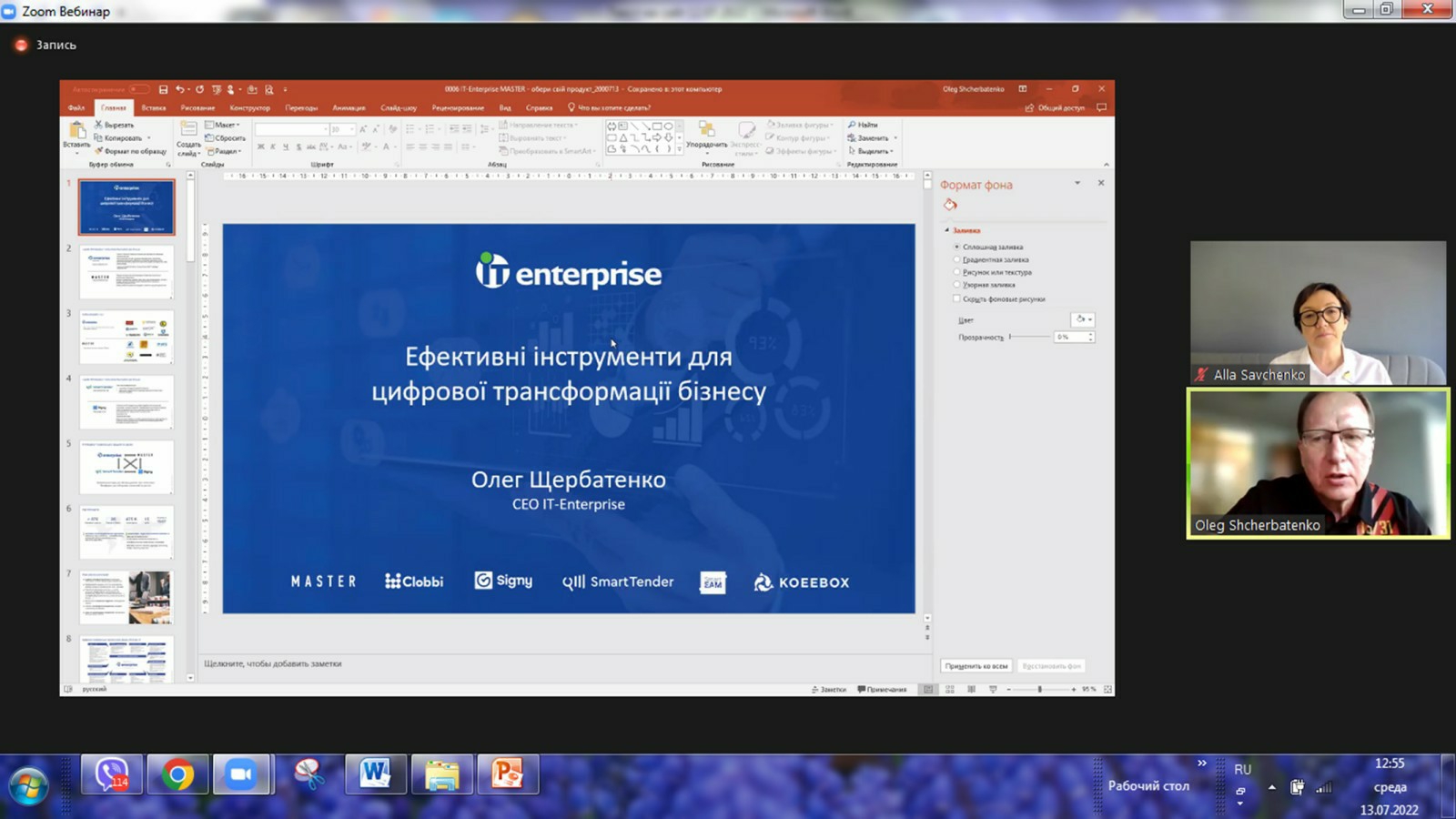 СПІКЕРИ: Сергій НІКІТЧИН, Заступник директора департаменту проектів цифровізації, Міністерство цифрової трансформації України; Кирило РУДНЄВ, Управляючий партнер, Smart Business (ПО-Microsoft); Володимир БІЛОУС, Генеральний директор, Best-Run Consulting (ПО-SAP Business One); Олег ЩЕРБАТЕНКО, CEO, IT-Enterprise (ПО-IT-Enterprise, Master); Олександр СМІРНОВ, Партнер/CEO, A5 Solutions (ПО- А5); Антон ПІСКУН, Менеджер проектів, Bjet (ПО- Odoo); Вячеслав КУЗНЄЦОВ, ПО-Облік SaaS; Сергій СНІГУР, представник CFO Club Ukraine; Олексій АРХІПОВ, CFO в компанії Interexy Inc, Non-Executive Director в ТОВ «Аерохендлінг».