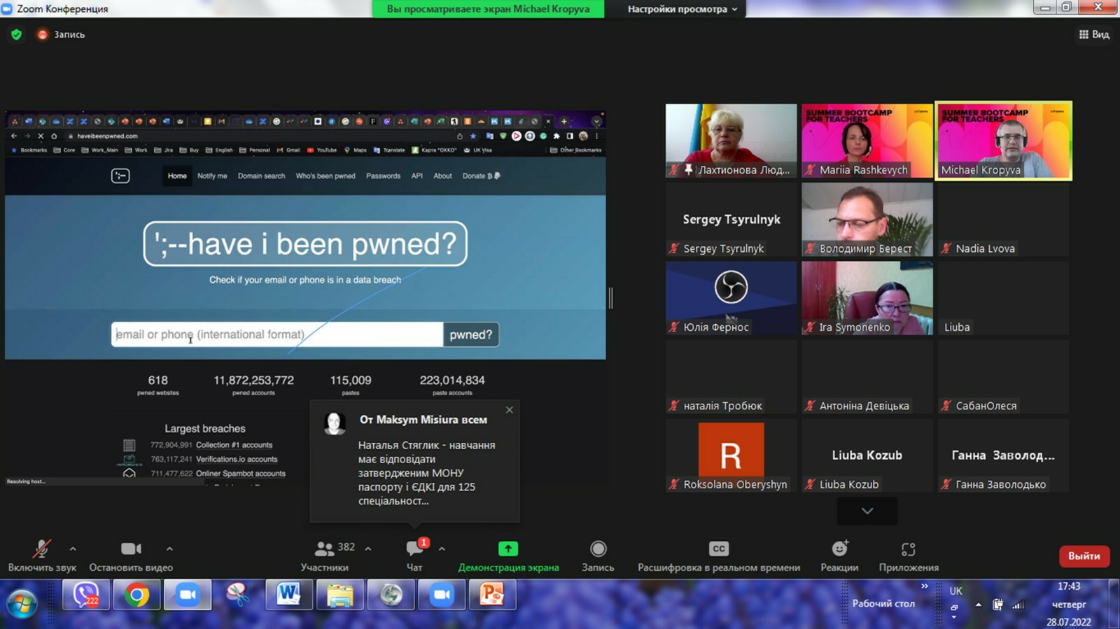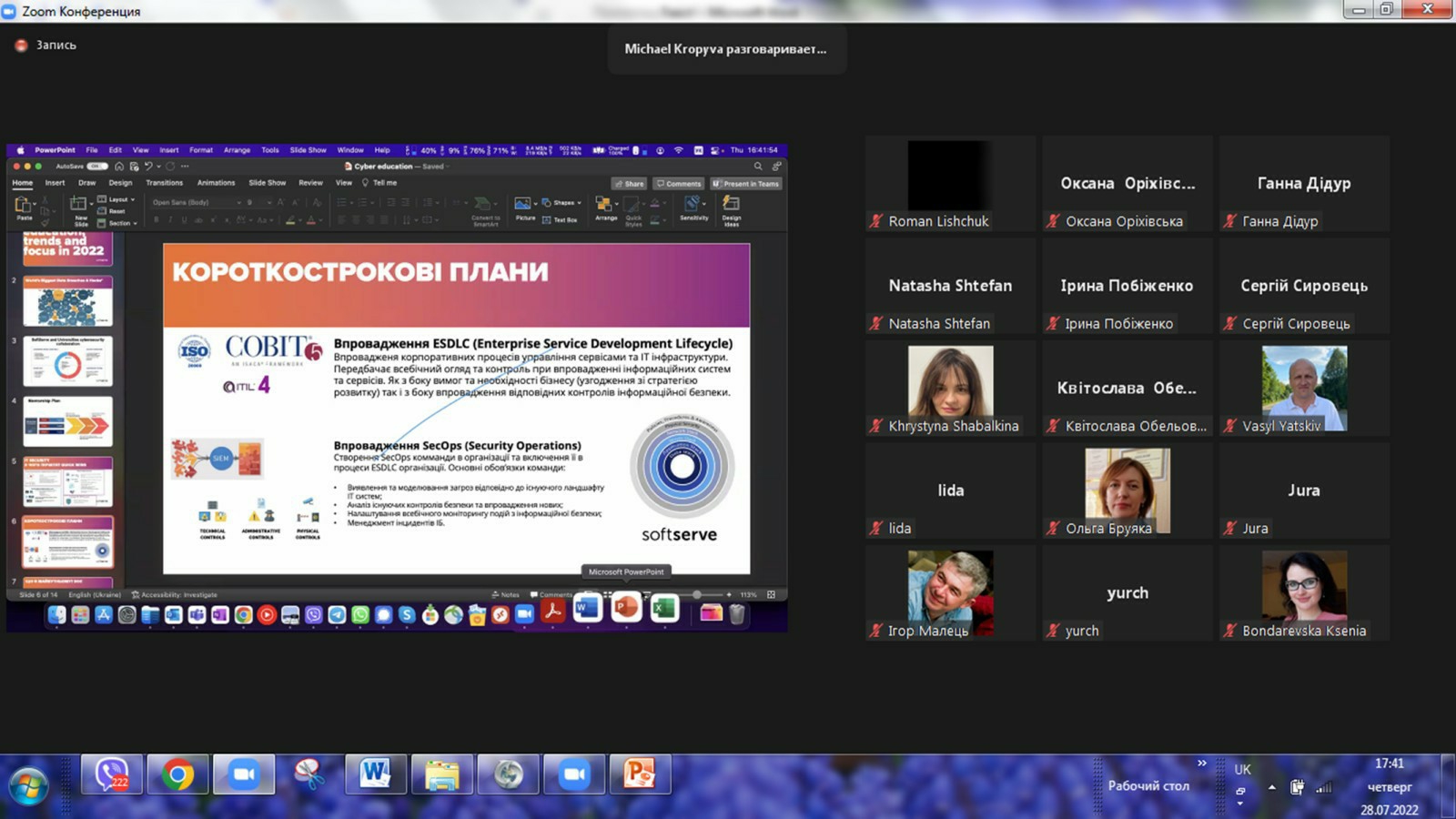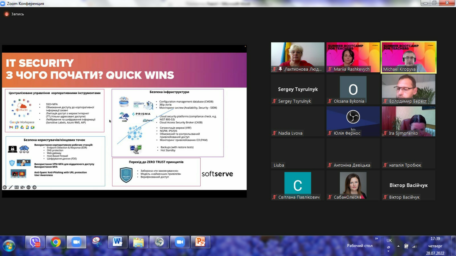 28 липня о 17.00 в режимі онлайн відбувся четвертий з циклу вебінар на найочікуванішу тему в рамках проєкту «Tech Summer for Teachers Bootcamp» - «Cybersecurity education - trends and focus 2022 / «Освіта з кібербезпеки – тенденції та фокус 2022».