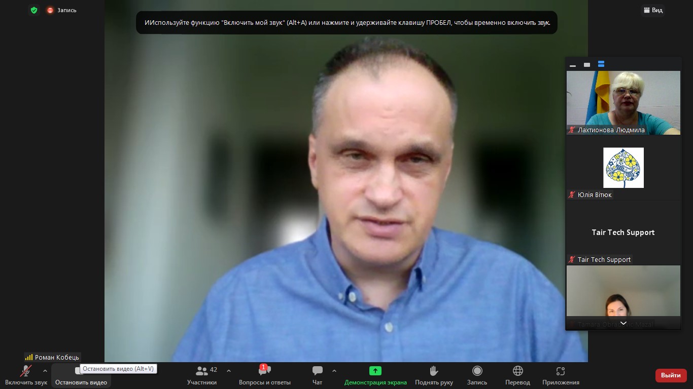 В он-лайн зустрічі взяли участь директор ННІРО НАУ, колишній державний службовець, Заслужений працівник освіти України Галина ЛАЗАРЄВА та заступник директора ННІРО НАУ, к.е.н., доцент Людмила ЛАХТІОНОВА.