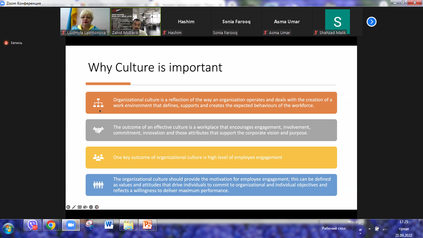 21 вересня 2022 р. о 19.00 у м. Ісламабад відбувся онлайн вебінар на тему «Як виміряти культуру організації» / «How to Measure Organizaion’s Culture».