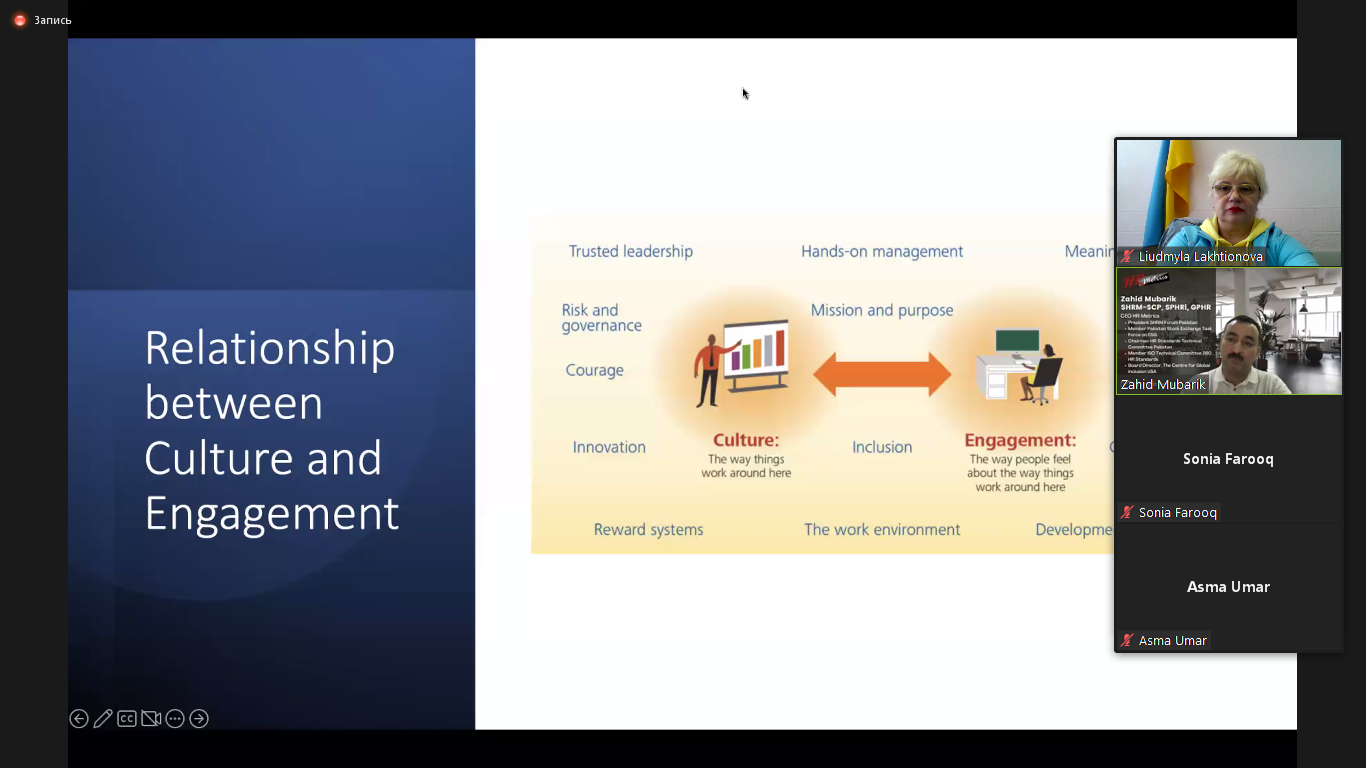 Спікер вебінару - Zahid MUBARIK, лідер стратегічного управління людськими ресурсами, генеральний директор HR Metrics, президент-засновник SHRM Forum Pakistan. Він має честь бути єдиним керівником відділу кадрів з Південної Азії, який став членом Технічного комітету 260 ISO з розробки глобальних стандартів управління персоналом.
