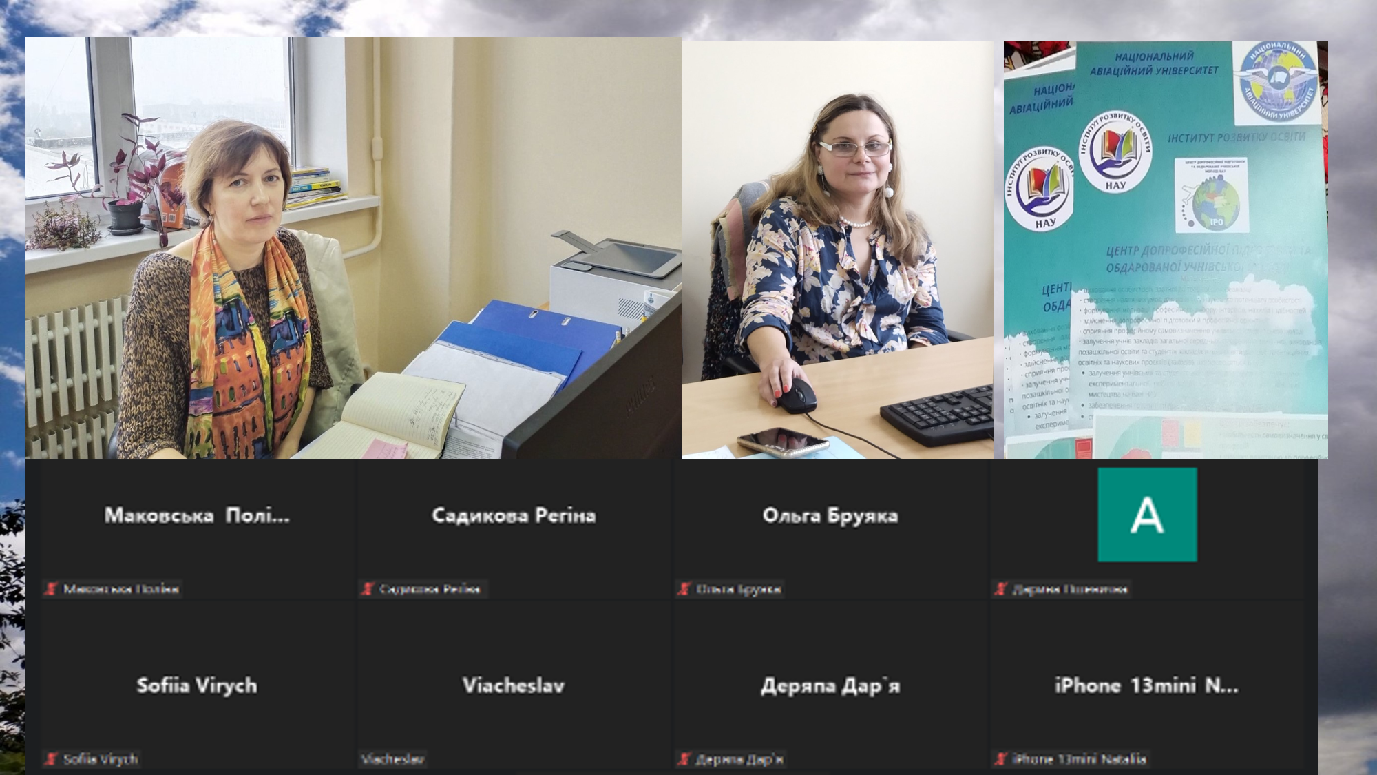 Модератор заходу – ПЕТРОВСЬКА Тетяна, кандидат педагогічних наук, директор Центру допрофесійної підготовки та обдарованої учнівської молоді Навчально-наукового інституту розвитку освіти НАУ. Інформаційне забезпечення заходу здійснювала ТРЕТЬЯКОВА Аліна, провідний фахівець ННІРО НАУ.