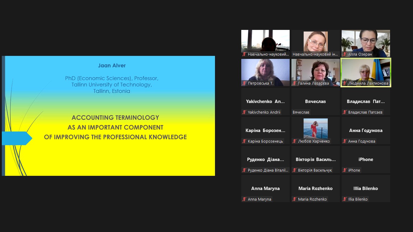 Першу лекцію на тему «Accounting Terminology as an Important Component of Improving the Professional Knowledge» / «Термінологія бухгалтерського обліку як важлива складова удосконалення професійних знань» прочитав кандидат економічних наук, професор Інституту управління бізнесом Талліннського технологічного університету Яаан АЛВЕР.