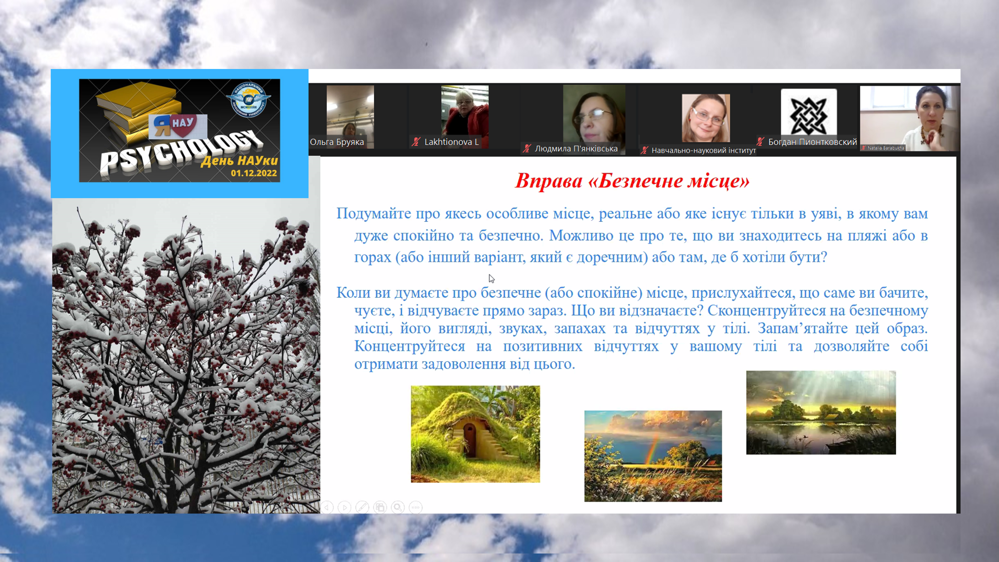 Тема практичного заняття психологічної наукової школи: «Техніки самодопомоги в період війни» викликала надзвичайну зацікавленість слухачів. У непростих реаліях сьогодення для українців кожна людина в Україні потребує певних психологічних знань щодо самодопомоги та уміння нормалізувати власний психоемоційний стан.