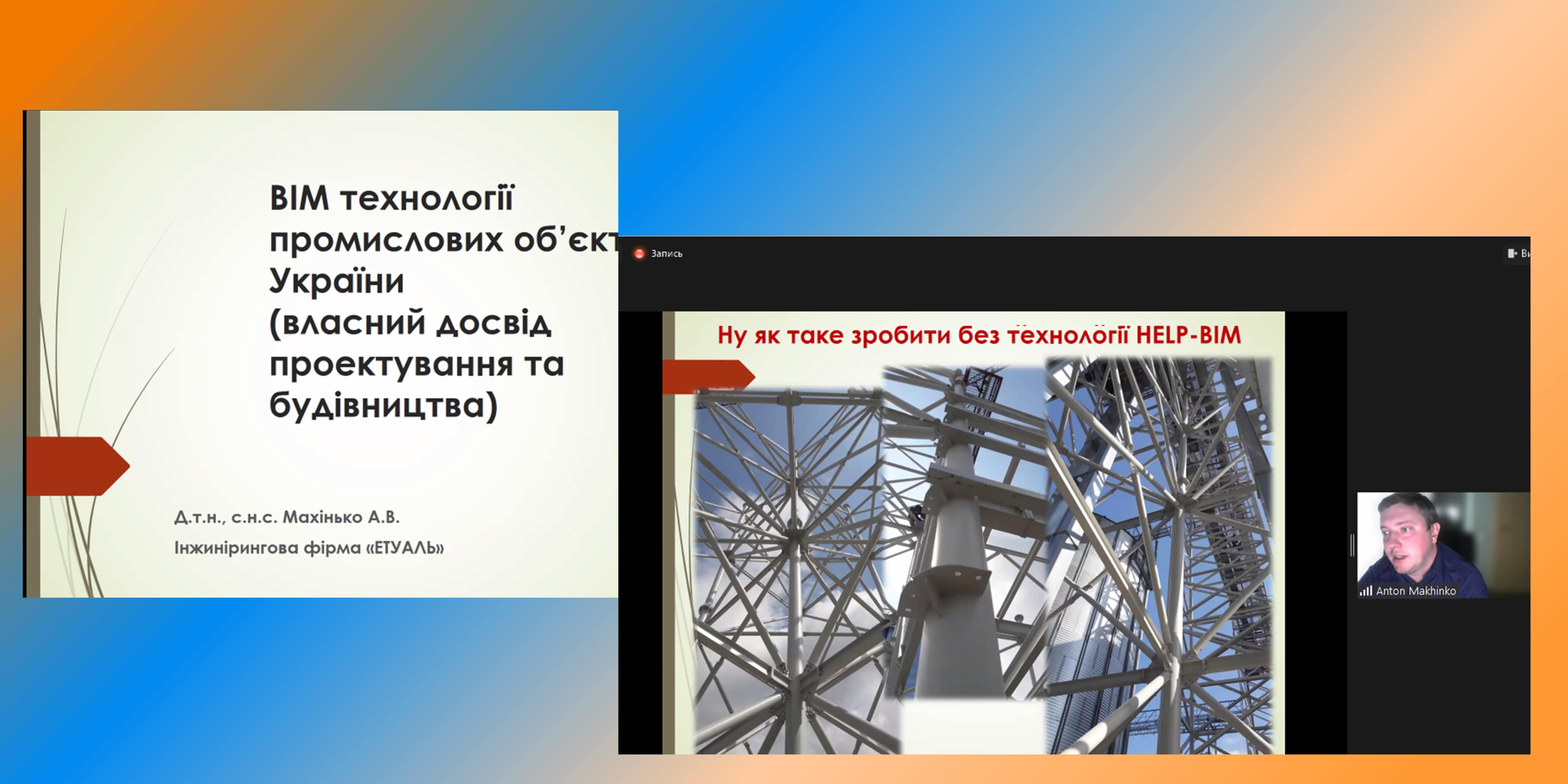 Тема виступу: «BIM технології промислових об’єктів України» (власний досвід проєктування та будівництва)». Слухачі змогли переконатися, що сучасні інформаційні та цифрові технології широко використовуються, як у повсякденному житті сучасної людини, так і в різних галузях промисловості, більше того, таке впровадження сьогодні є просто необхідним, так як відмова від сучасних технологій призводить до втрати конкурентних переваг цілих галузей в економіці країни.