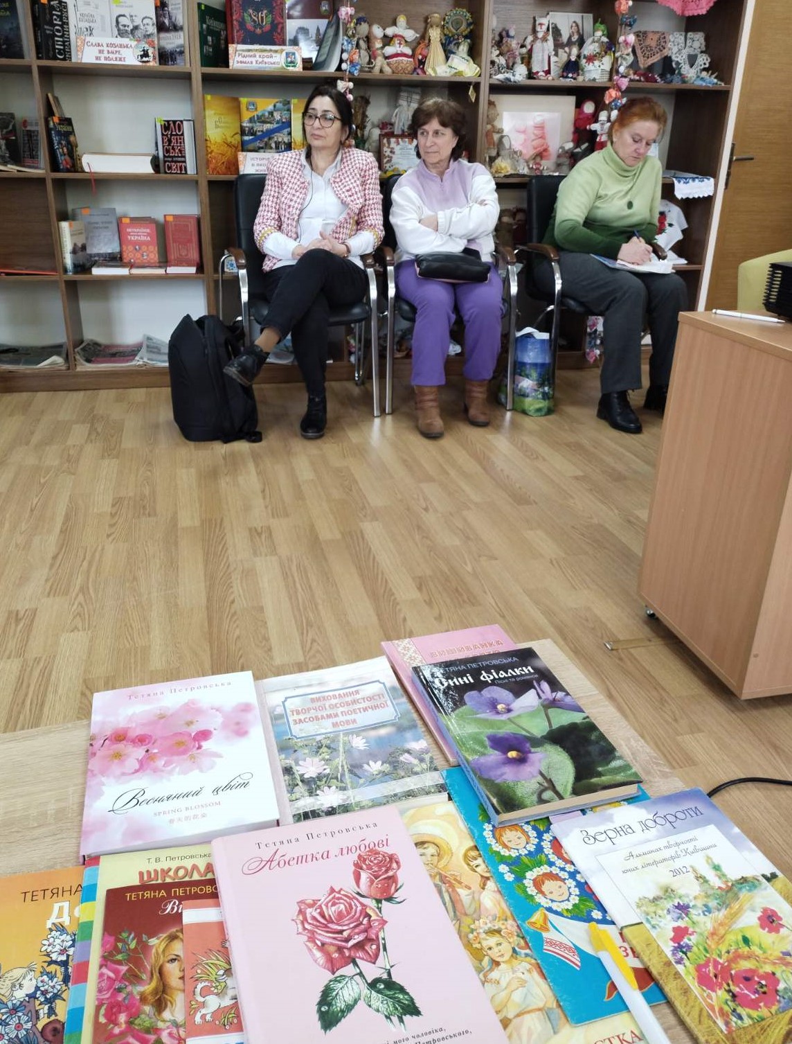 Тетяна Василівна прочитала власні вірші зі збірок «Відкритий урок», «Весняний цвіт» та вірші на болючу тему війни, розповіла учасникам зустрічі про профорієнтаційні заходи і творчі конкурси, які організовує Навчально-науковий інститут розвитку освіти Національного авіаційного університету. Виступ супроводжувався презентацією. Також учасники зустрічі послухати відеозаписи пісень на слова Т. Петровської, які виконують Віктор Кавун, Руслана Лоцман – заслужені артисти України і гурт «Чураївна», під керівництвом Ірини Якубовської, заслуженого працівника освіти України.