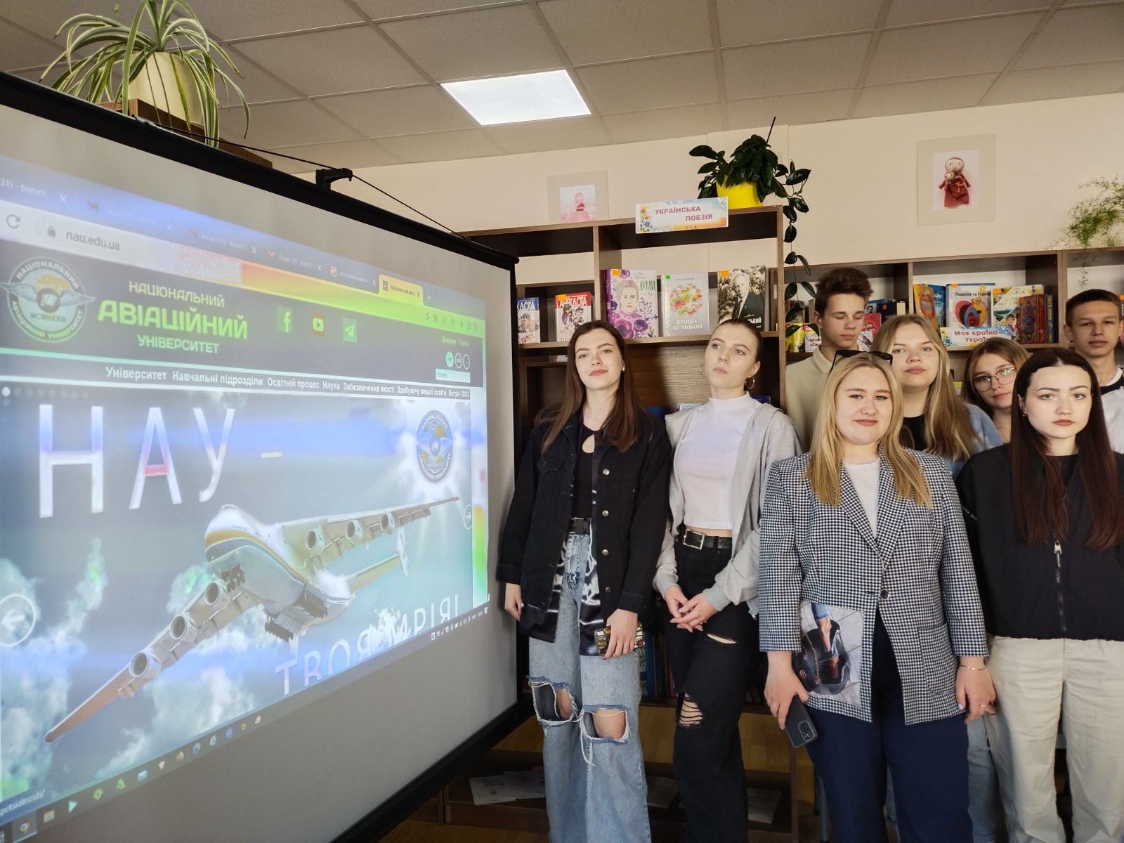 З відповідальністю учні 10-го класу сприйняли профорієнтаційне інформування про напрямки діяльності та переваги Національного авіаційного університету, різних факультетів університету, та про профорієнтаційні проєкти і заходи для майбутніх абітурієнтів, які наближають до професійної діяльності, можливість відвідати навчальний ангар університету, ознайомитися із експозицією Музею історії авіації.