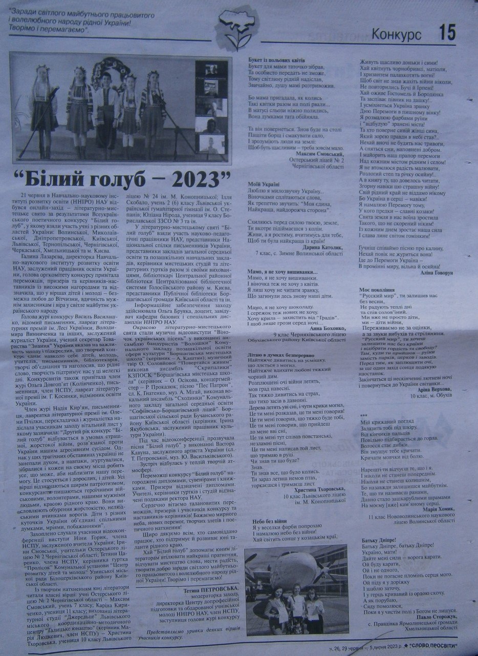 Літературно-мистецьке онлайн-свято «Білий голуб»