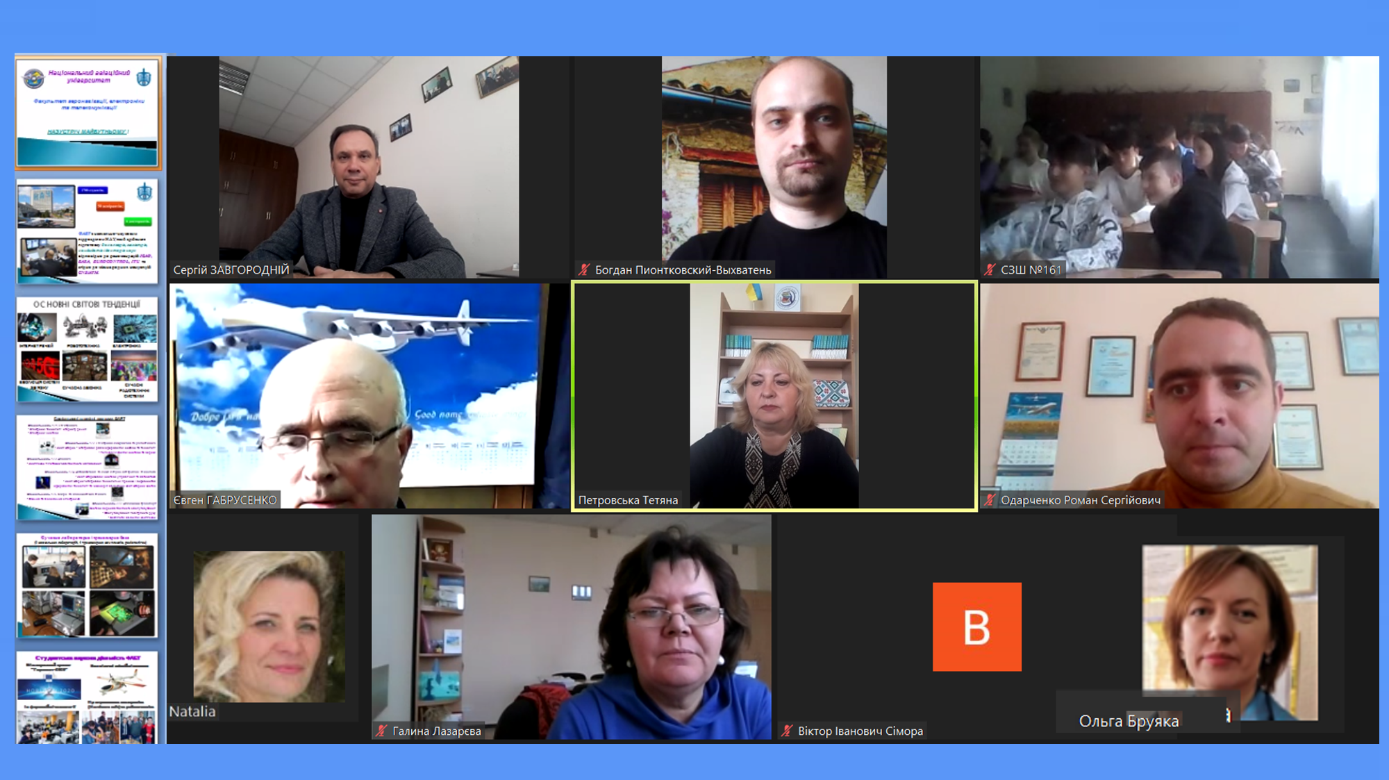19 жовтня 2023 року відбувся профорієнтаційний захід «День професій» з ФАЕТ в онлайн-форматі для майбутніх абітурієнтів. Організатори заходу – Навчально-науковий інститут розвитку освіти (директор Лазарєва Галина, заслужений працівник освіти України) спільно з Факультетом Факультетом аеронавігації, електроніки та телекомунікацій.