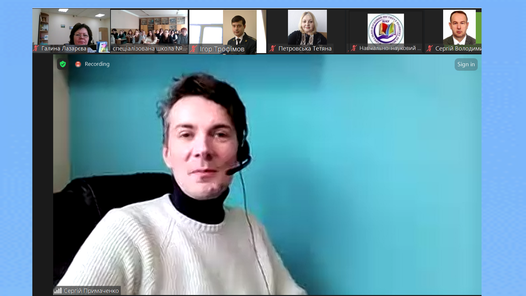 Модератор заходу – Тетяна Петровська, кандидат педагогічних наук, директор Центру допрофесійної підготовки та обдарованої учнівської молоді ННІРО НАУ.