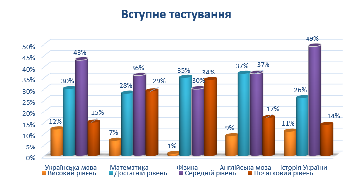 за результатами вступного тестування 2024 н.
