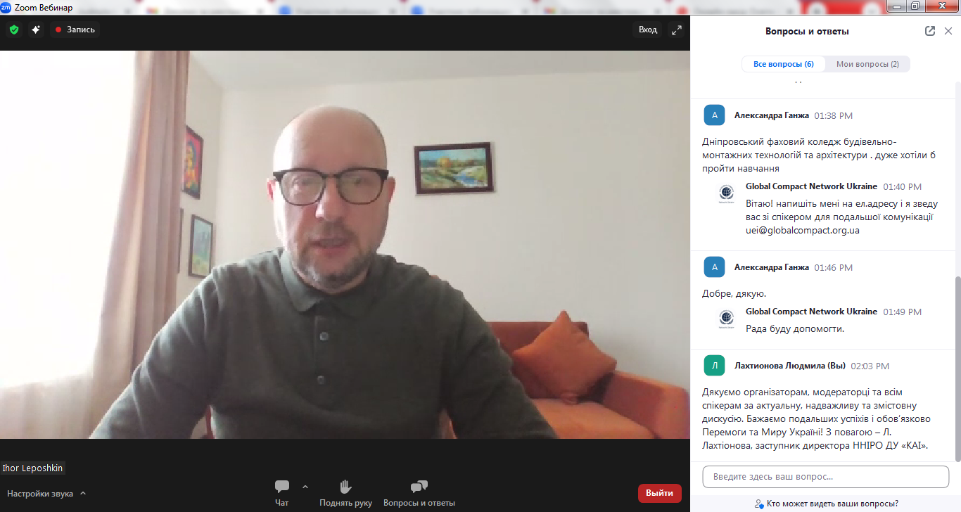 14 січня 2025 року відбулась онлайн-дискусія «Освіта за правилами бізнесу: імператив чи тренд?», яку організував Глобальний договір ООН в Україні в межах Ukraine Energy Initiative, до якої долучилась заступниця директора ННІРО Людмила ЛАХТІОНОВА .