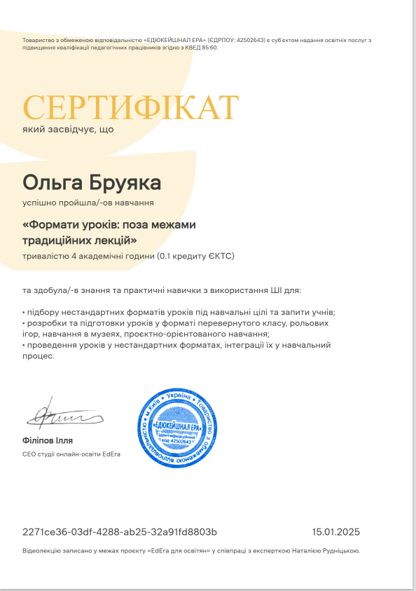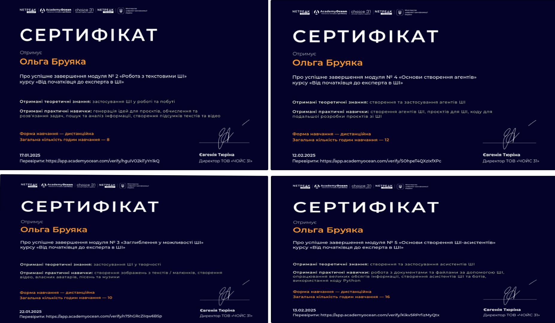 Науково-педагогічні працівники кафедри базових та спеціальних дисциплін Навчально-наукового інституту розвитку освіти, а саме завідувачка кафедри Ольга Бруяка успішно пройшла позапланове підвищення кваліфікації, організоване IT-компанією Netpeak Group. Навчання проводилося у дистанційному форматі відповідно до листа Міністерства освіти і науки України №1/23304-24 від 12 грудня 2024 року.