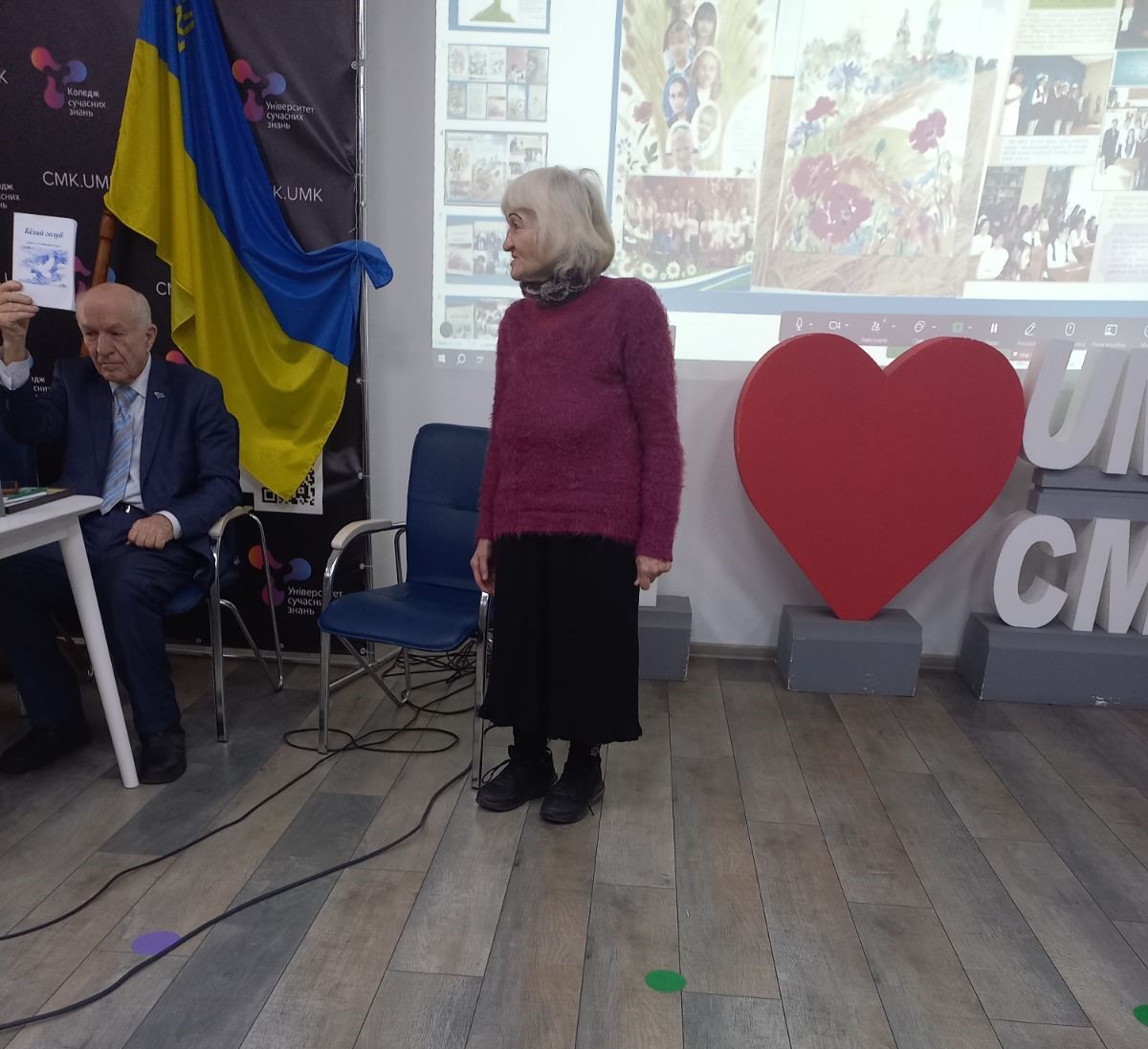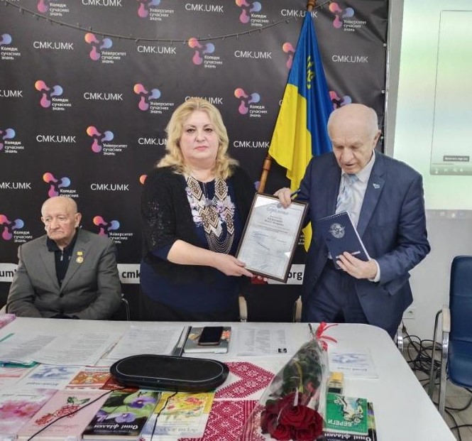 Тетяна Петровська розповіла про Всеукраїнський поетичний конкурс «Білий голуб», який проводить ННІРО Державного університету «Київський авіаційний інститут» і вручили грамоту В.Ф.Василашку, голові конкурсу.