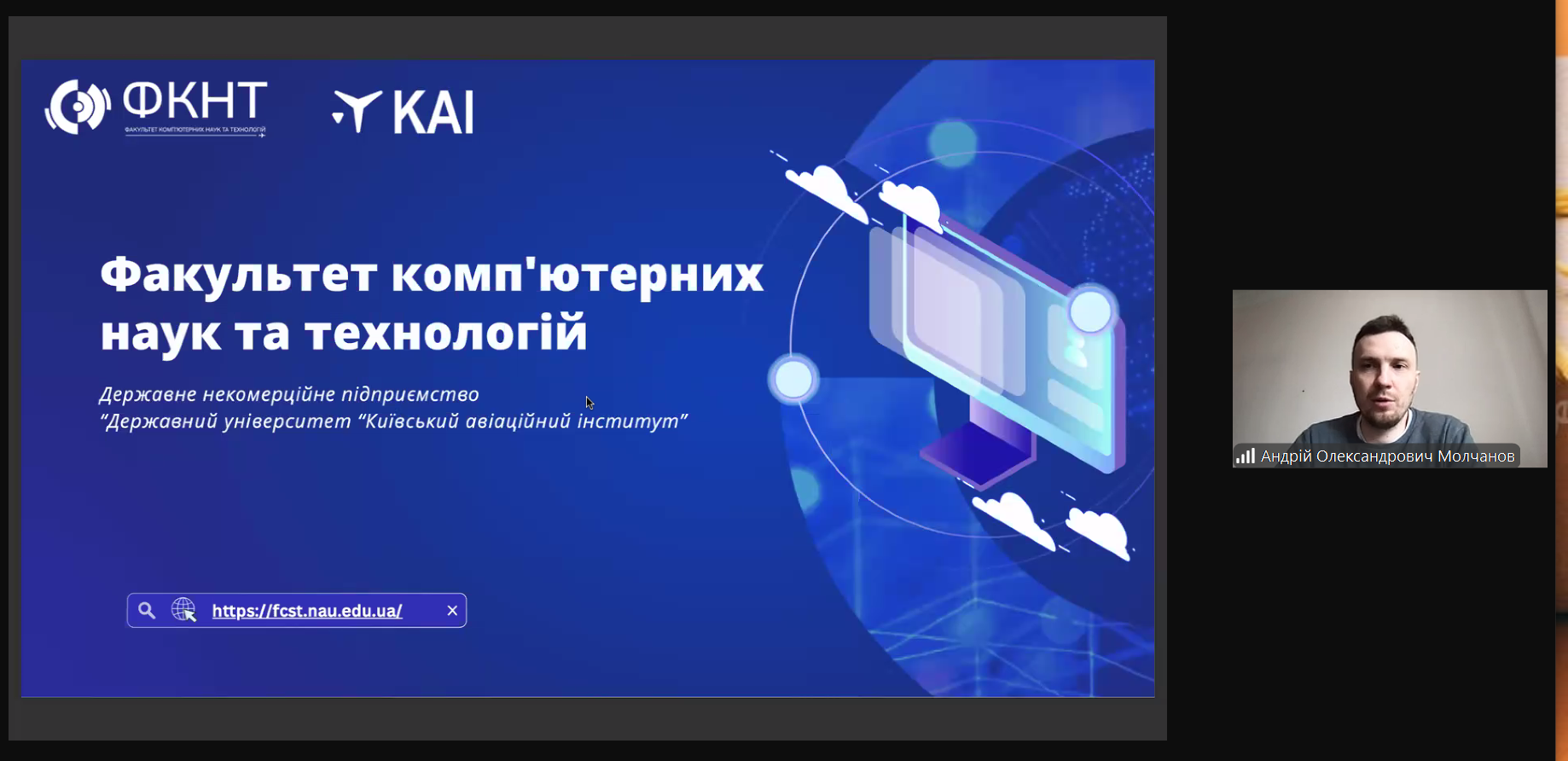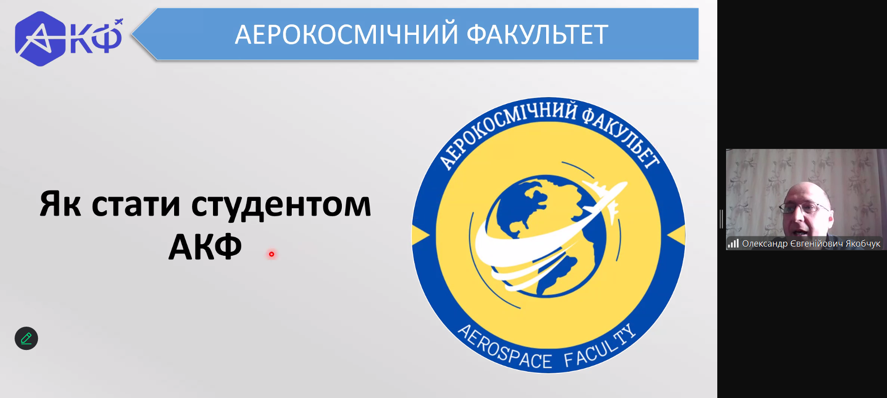 Спікери дистанційного заходу – Андрій МОЛЧАНОВ, заступник декана з навчально-виховної роботи ФКНТ, к.т.н.; Олександр ЯКОБЧУК, доцент кафедри конструкції літальних апаратів АКФ, к.т.н..