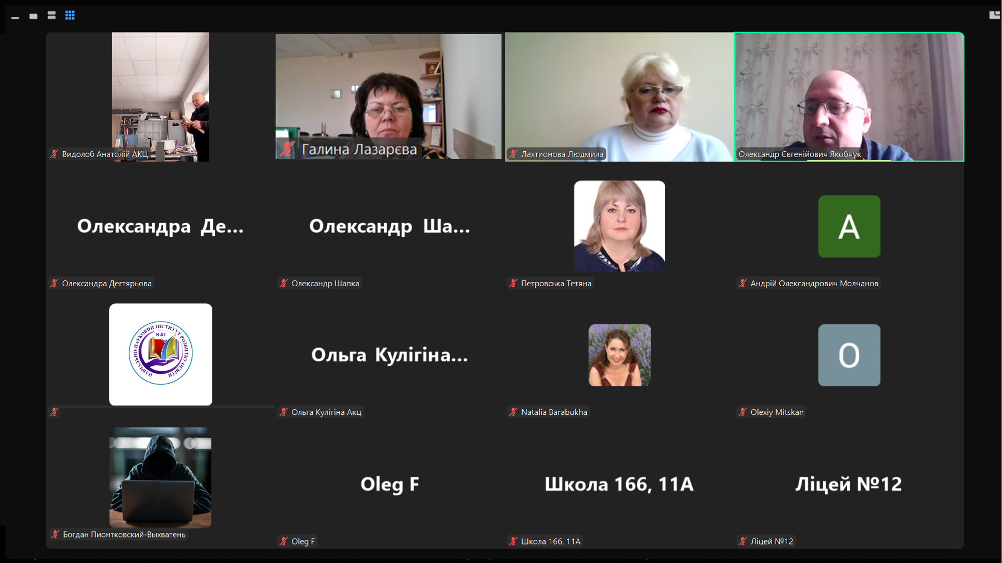 Організатори: Організатори дистанційного заходу – Навчально-науковий інститут розвитку освіти, який очолює Галина ЛАЗАРЄВА, заслужений працівник освіти України, спільно з факультетом АКФ, декан Святослав ЮЦКЕВИЧ; ФКНТ, декан Андрій ФЕСЕНКО.