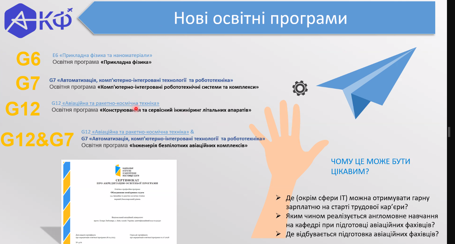 В Державному університеті «Київський авіаційний інститут» відбувся День відкритих дверей онлайн з Аерокосмічним факультетом і Факультетом комп’ютерних наук та технологій учнів 10-11 класів закладів загальної середньої освіти 08 квітня 2025 року на платформі Zoom.