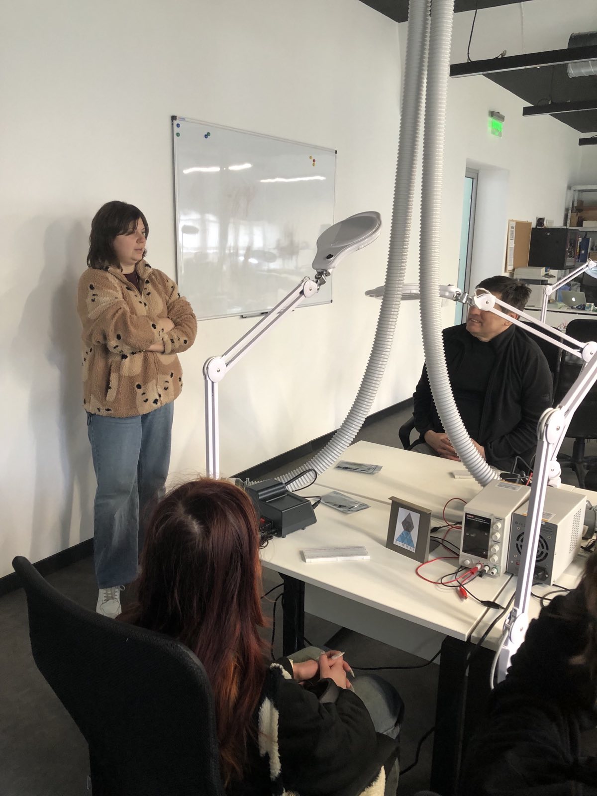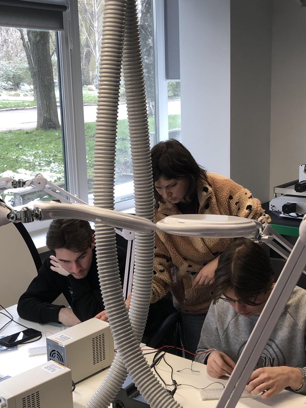 Гостей зустріла – Галина Лазарєва, директор ННІРО КАІ, заслужений працівник освіти України. Гуртківців ознайомили з лабораторією, яка вміщує обладнання, що необхідно для реалізації новітніх ідей: комп’ютерну техніку, мікроконтролери, елементну базу, оптичні прилади, 3D-принтери тощо, а також зі спеціальностями кафедри АСУ, які пов’язані з електронікою, телекомунікаціями, авіонікою та інтернетом речей (IoT).