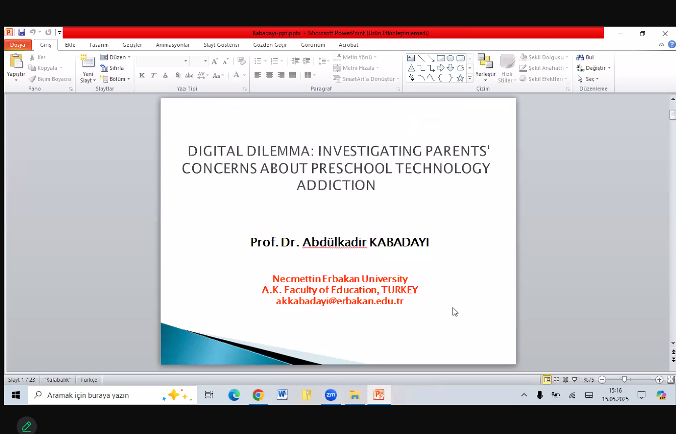 Сучасну проблему за темою «ЦИФРОВА ДИЛЕМА: СТУРБОВАНІСТЬ БАТЬКІВ З ПРИВОДУ ЗАЛЕЖНОСТІ ВІД ТЕХНОЛОГІЙ У ДІТЕЙ ДОШКІЛЬНОГО ВІКУ» («DIGITAL DILEMMA: INVESTIGATING PARENTS' CONCERNS ABOUT PRESCHOOL TECHNOLOGY ADDICTION») висвітлив АБДУЛКАДИР КАБАДАЙІ, кандидат педагогічних наук, професор, академік, педагогічний факультет, Університет імені Неджметтіна Ербакана (м. Конья, Туреччина).