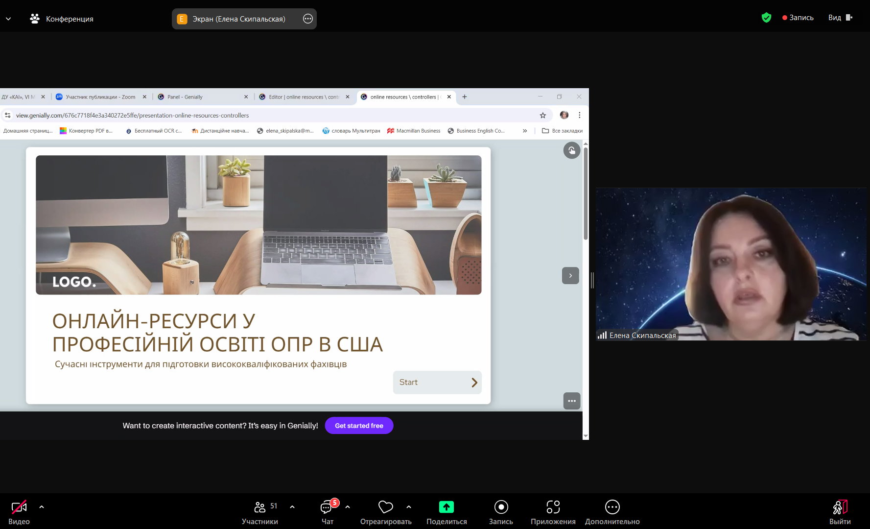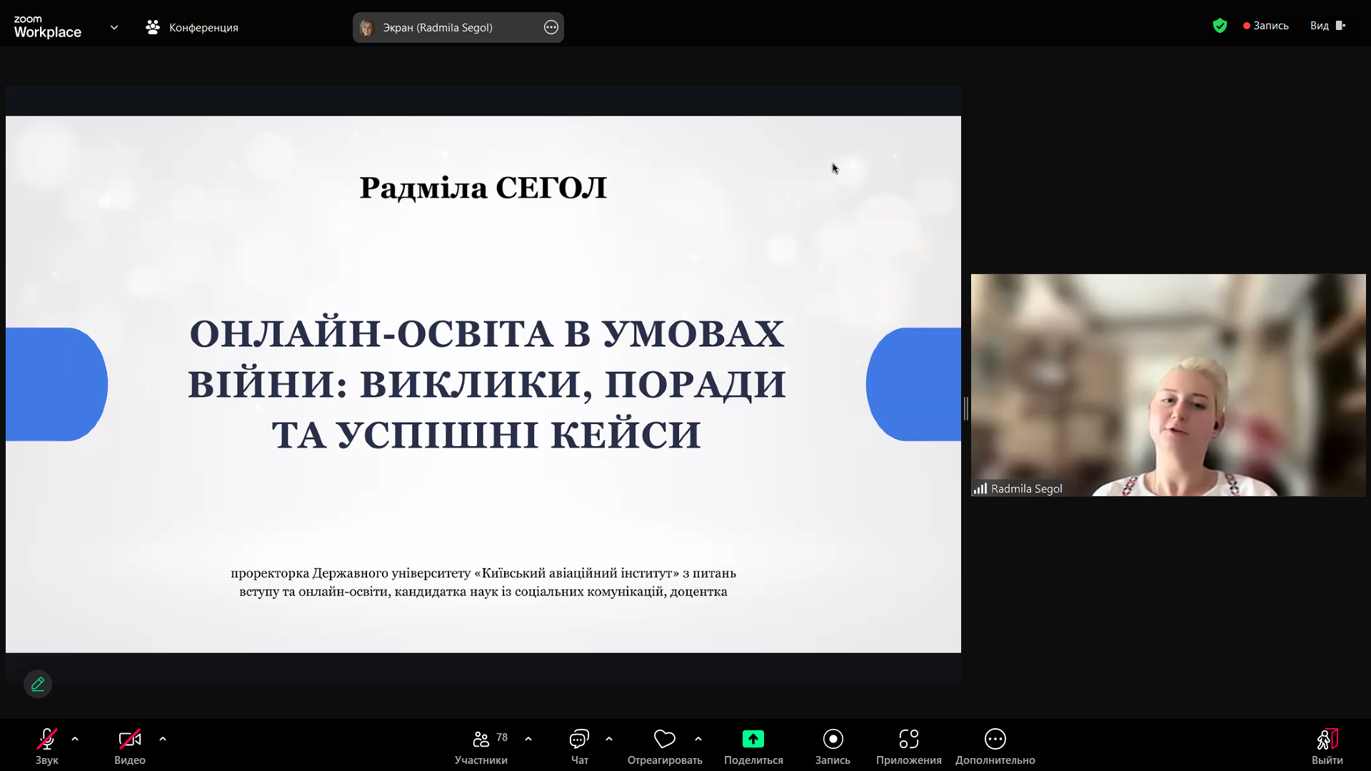 Відкрила Пленарне засідання СЕГОЛ Р.І, кандидат наук із соціальних комунікацій, доцент, проректор з питань вступу та онлайн-освіти Державного університету «Київський авіаційний інститут» (м. Київ, Україна), доповіддю на вельми актуальну тему «ОНЛАЙН-ОСВІТА В УМОВАХ ВІЙНИ: ВИКЛИКИ, ПОРАДИ ТА УСПІШНІ КЕЙСИ».