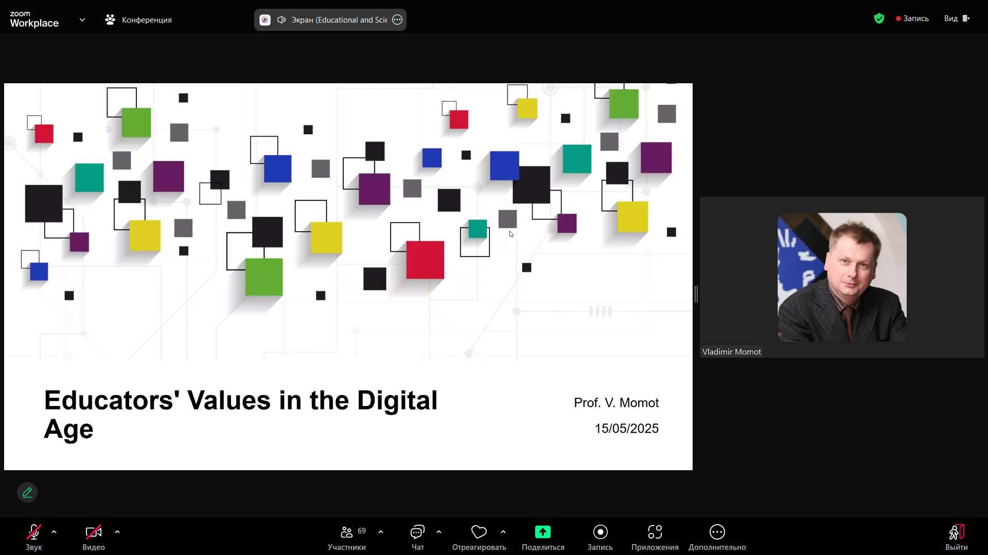 Велику зацікавленість викликала презентація «ЦІННОСТІ ПЕДАГОГІВ ЦИФРОВОЇ ЕПОХИ» МОМОТА В.Є., д. екон. наук, професора кафедри менеджменту, Університет імені Альфреда Нобеля (м. Дніпро, Україна).