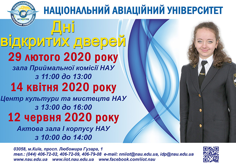 - 14 квітня 2020 року в холі Центру культури і мистецтв НАУ, з 13:00 до 16:00;