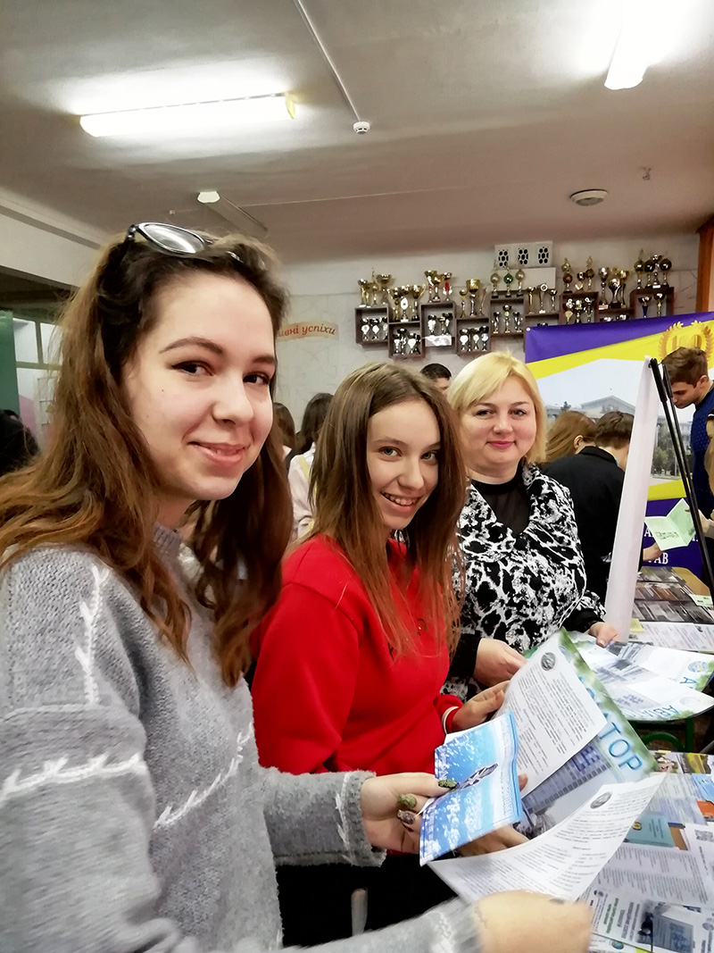 Старшокласники із зацікавленістю ознайомилися із виставковими матеріалами університету. Серед учнів були випускники, які вже обрали для вступу саме Національний авіаційний університет. Приємно, що учителі школи відзначили, що їхні випускники попередніх років стали студентами і здобувають вищу освіту в НАУ та знають про високу кваліфікацію науково-педагогічних працівників, про науковий потенціал університету.