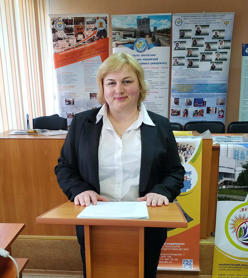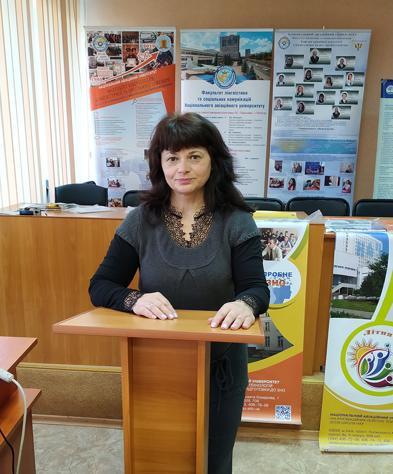 Від імені ректора НАУ Володимира Ісаєнко та директора НН інституту інноваційних освітніх технологій Наталії Муранової вітала присутніх і представила презентацію «НАУ – твоя мрія» директор Центру обдарованої учнівської молоді Людмила Куделя. Змістовний виступ не тільки інформував абітурієнтів про структуру університету, переваги навчання, різнопланову діяльність, але й зосередив увагу на важливих аспектах забезпечення якості вищої освіти, можливості ґрунтовної підготовки на кафедрі базових і спеціальних дисциплін до загальнодержавного ЗНО, можливості долучитися до наукової, науково-дослідницької діяльності в НАУ, участі учнівської молоді в освітніх проєктах, наукових школах, олімпіадах, що проводяться в університеті на безоплатній основі.