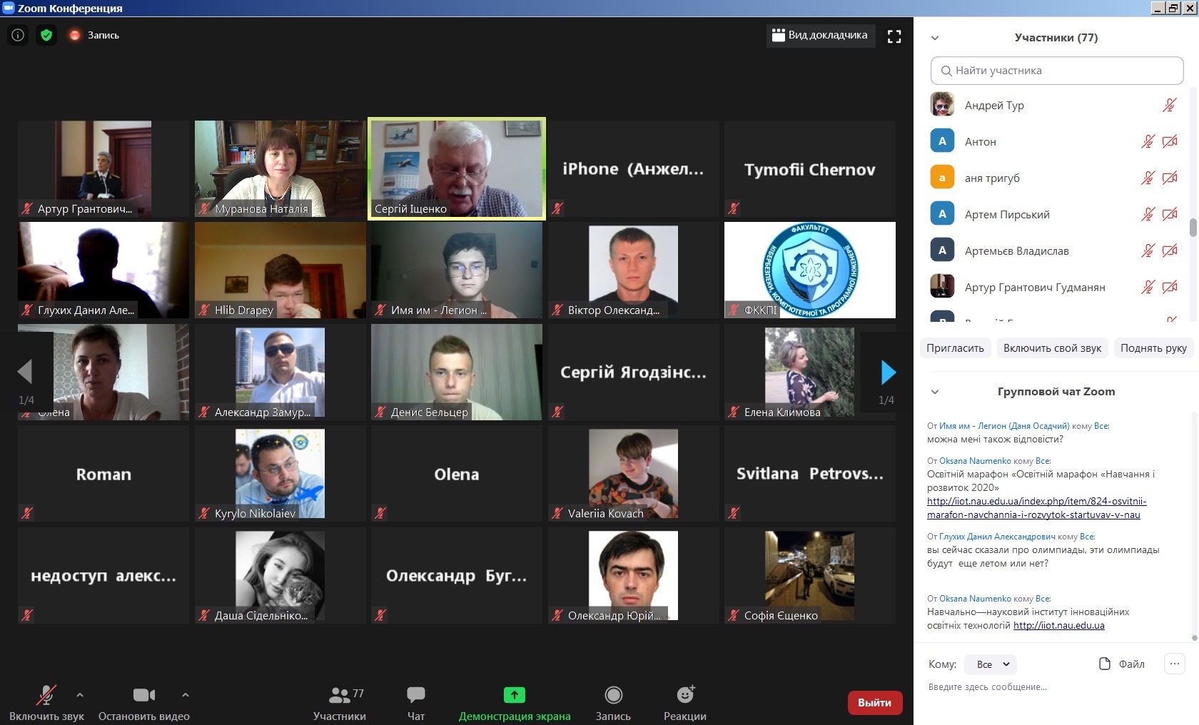 Учасниками онлайн конференції стали майбутні студенти НАУ, а також професорсько-викладацький склад, які зібралися заради конструктивного діалогу для проведення вдалої вступної кампанії-2020 та здійснення мрій вступників.