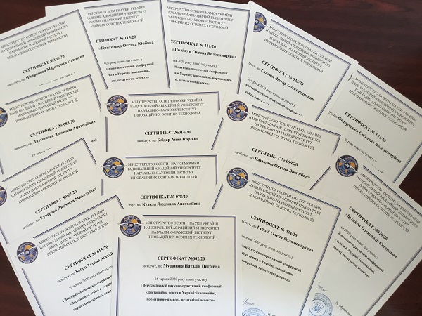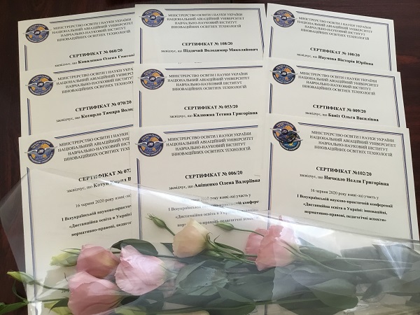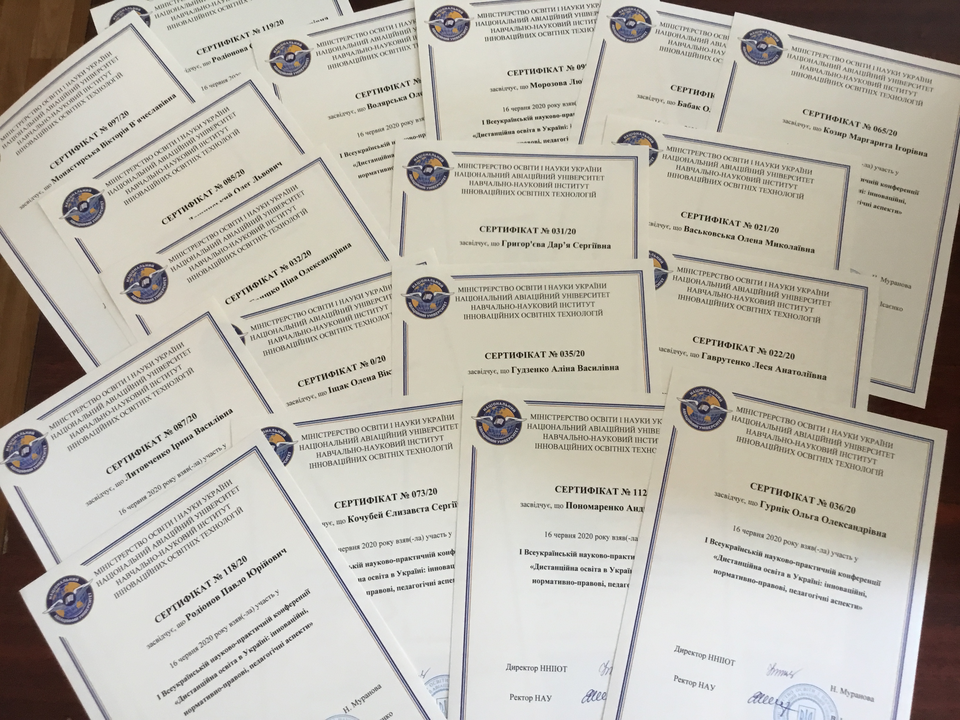 Усім учасникам конференції надруковано Сертифікати відповідно до опублікованого на сайті ННІІОТ НАУ (рубрика «Конференції, семінари») списку: