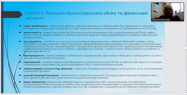На лекції було розглянуто історію та причини розробки і введення в дію Закону України «Про бухгалтерський облік і фінансову звітність в Україні»; розкрито головне завдання трансформації національної системи бухгалтерського обліку; надано загальну характеристику даного закону; вказано його мету та призначення; на практичних прикладах висвітлено роботу принципів бухгалтерського обліку та фінансової звітності; зазначено форми організації бухгалтерського обліку на підприємствах; ознайомлено з обов’язками головного бухгалтера; наголошено на вимогах до посади головного бухгалтера підприємства, що становить суспільний інтерес. Роз’яснено застосування міжнародних стандартів для певної категорії вітчизняних підприємств.