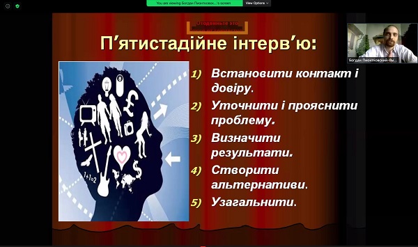 25 вересня 2020 року відбувся онлайн вебінар для освітян, вчителів, батьків «Цілеспрямоване інтерв’ювання і консультування. Сприяння розвитку особистості».
