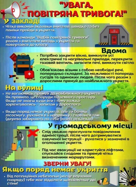 На шляху до укриття, а також при вході до них, необхідно дотримуватися спокою і порядку.