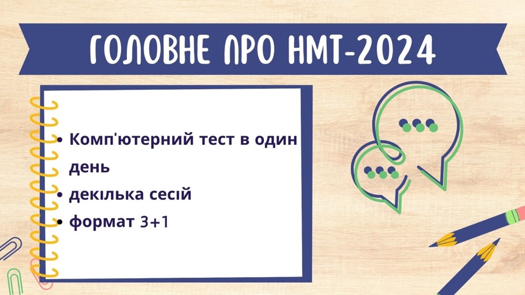 Конкурсний відбір вступників для здобуття вищої освіти в 2024 році відбудеться за результатами національного мультіпредметного тесту. Національний мультипредметний тест, або ж НМТ, — це комплексне онлайн-тестування, яке дає підставу для участі у конкурсному відборі при вступі на освітній рівень бакалавра. НМТ — це альтернатива до зовнішнього незалежного оцінювання, введена для оцінки знань вступників під час дії воєнного стану. Тобто для вступу на бакалаврський або медичний магістерський рівні вищої освіти абітурієнтам потрібно буде отримати результати зовнішнього незалежного оцінювання НМТ в комп’ютерному форматі |