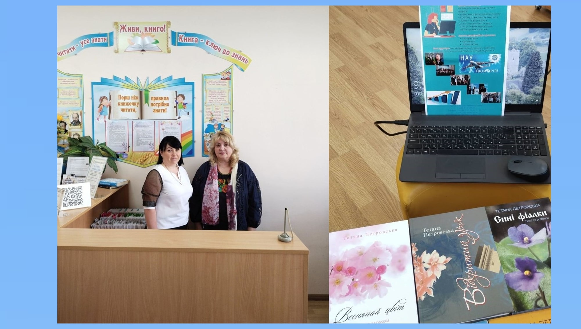 У Публічній бібліотеці Борщагівської сільської ради Бучанського району Київської області відбулися творчі зустрічі до Дня матері. З учнями 5-го і 10-го класів Софіївсько-Борщагівського ліцею 12 травня 2023 р. провела заходи Тетяна Петровська, к.пед.н., член Національної спілки письменників України, директор Центру допрофесійної підготовки та обдарованої учнівської молоді Навчально-наукового інституту розвитку освіти НАУ. Між Національним авіаційним університетом і Софіївсько-Борщагівсьим ліцеєм підписала угода про співробітництво. |