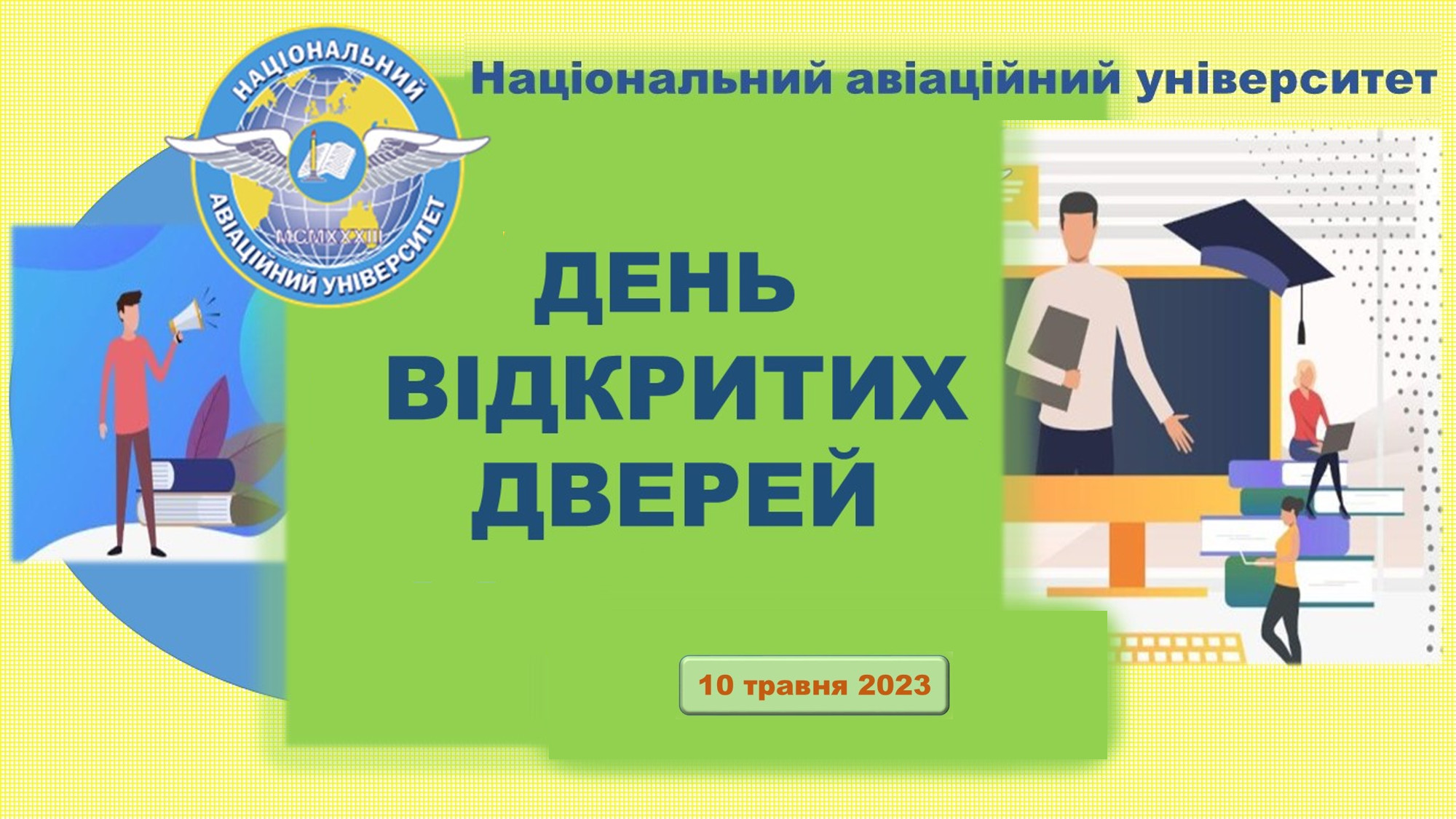Шановні учні, студенти коледжів, майбутні абітурієнти! Національний авіаційний університет запрошує учнів старших класів та студентів коледжів на День відкритих дверей, який відбудеться 10 травня 2023 року о 14:00 в онлайн-форматі на платформі ZOOM. Організатори заходу: Навчально-науковий інститут розвитку освіти НАУ спільно з Приймальною комісією та факультетами. |