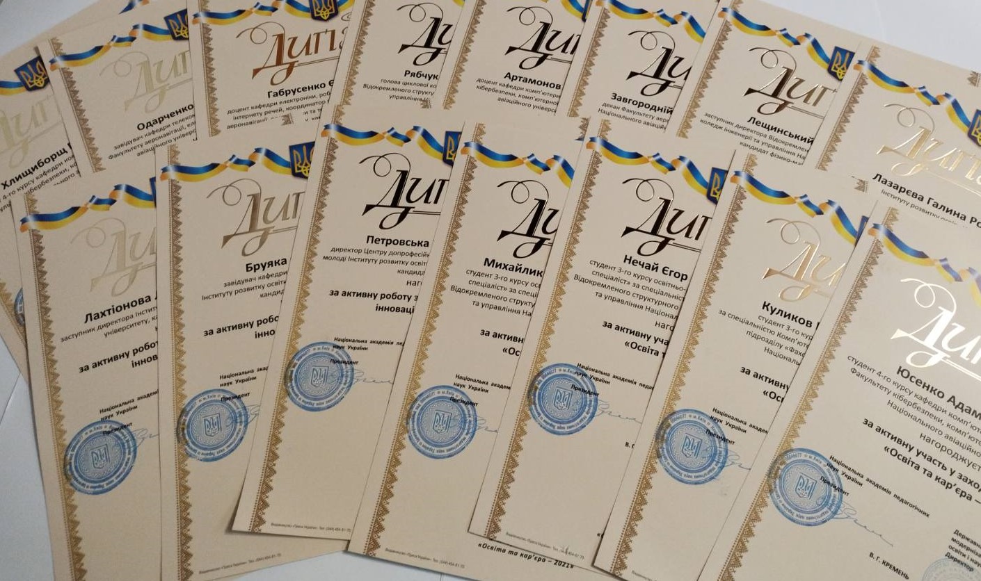 Національний авіаційний університет здобув почесне звання у рейтинговому виставковому конкурсі «Лідер вищої освіти України» і Гран-прі у номінації «Профорієнтаційна робота серед молоді» на міжнародній виставці «Освіта та кар’єра-2021», яка проходила 12-13 листопада 2021 року, використовуючи новітні технології.