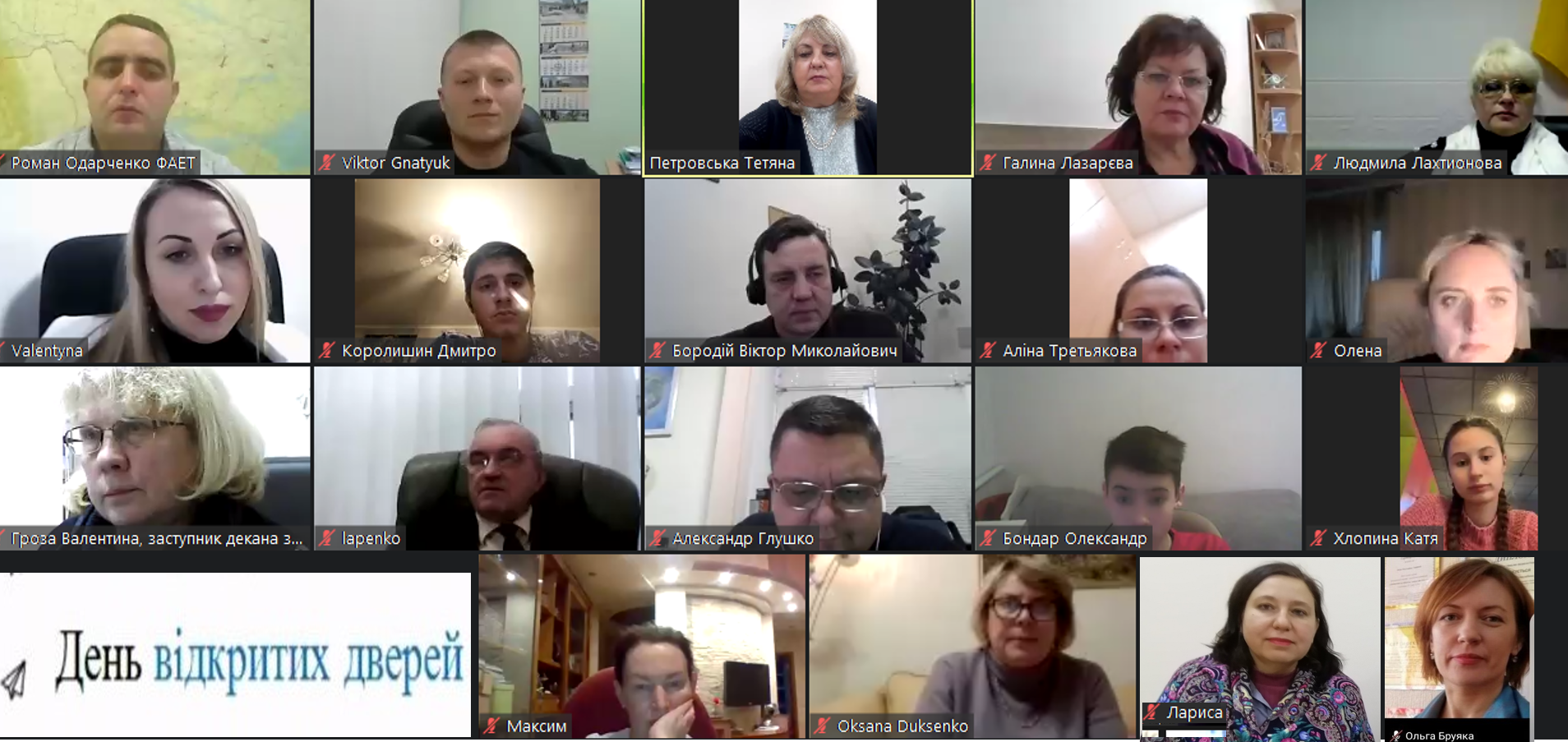 Для майбутніх абітурієнтів 08 грудня 2021 року в Національному авіаційному університеті відбувся «День відкритих дверей» в онлайн-форматі. У заході взяли участь учні 9-11 класів закладів загальної середньої освіти, студенти випускних груп коледжів та представники різних факультетів університету.