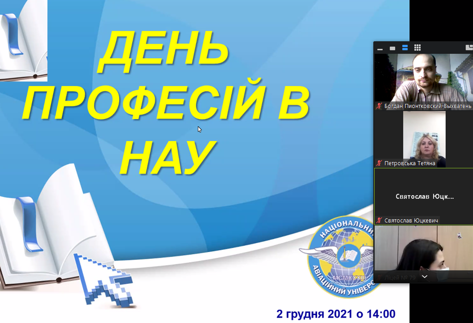 02 грудня 2021 року відбувся профорієнтаційний онлайн-захід «День професій в НАУ» для майбутніх абітурієнтів учнів 9-11 класів закладів загальної середньої освіти і студентів коледжів.