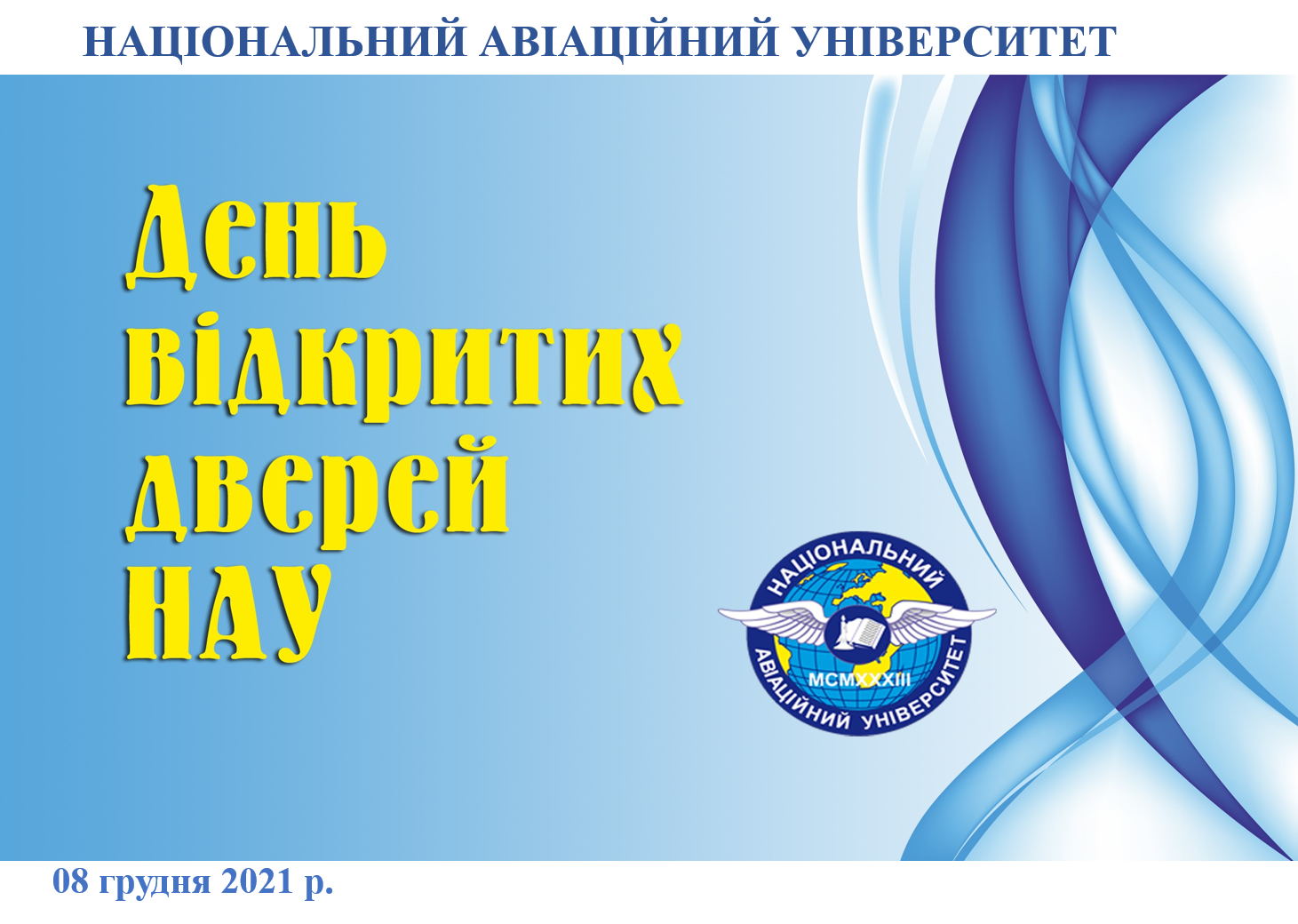 Національний авіаційний університет запрошує вас на День відкритих дверей, який відбудеться 08 грудня 2021 року о 15:00 у онлайн-форматі на платформі ZOOM. Захід пройде з 15.00 до 17.00.