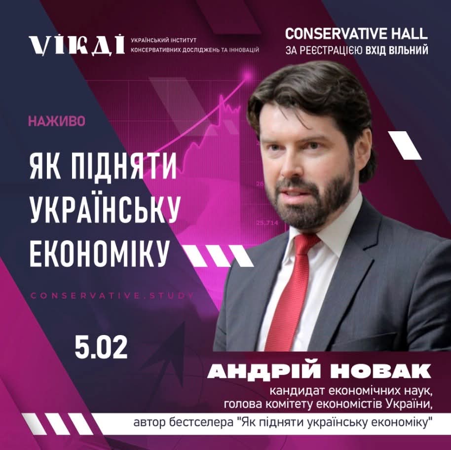 У Conservative Hall відбулася лекція відомого економіста, науковця та громадського діяча Андрія Новака “Як підняти українську економіку”. Подія, організована Українським інститутом консервативних досліджень та інновацій (УІКДІ) , зібрала представників бізнесу, науковців, державних службовців, студентів та активні громадяни. Лекція стала платформою для ґрунтовного обговорення стратегій економічного відродження України в умовах сучасних викликів.
