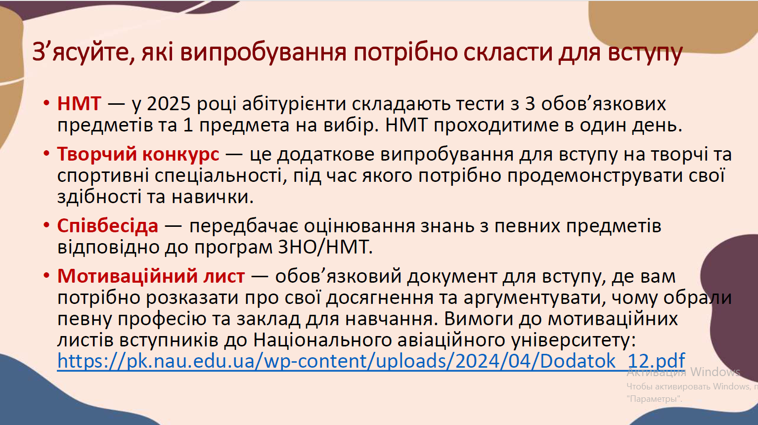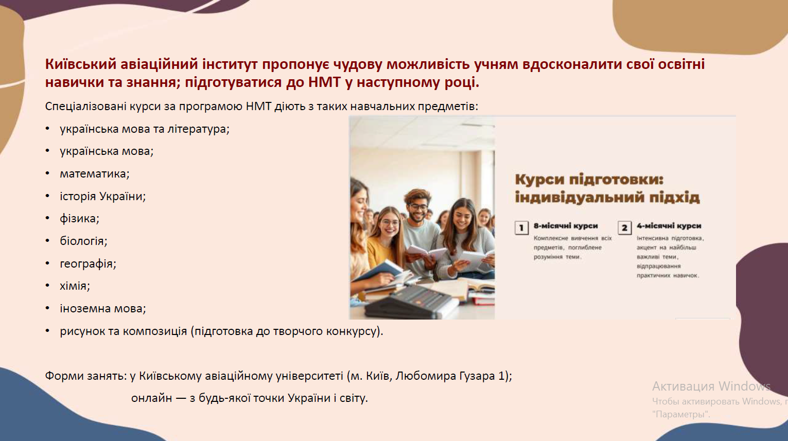 Слухачам курсів будуть надані пільги при вступі до університету згідно з Умовами прийому до закладу вищої освіти.
