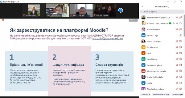 11 листопада 2020 року на базі лабораторії електронних засобів дистанційного навчання Інституту інноваційних освітніх технологій Національного авіаційного університету відбувся вебінар для освітян України на тему «Початок роботи на платформі Moodle».