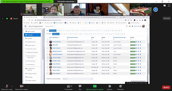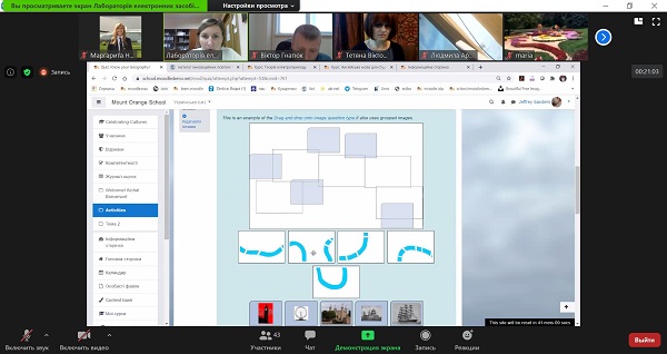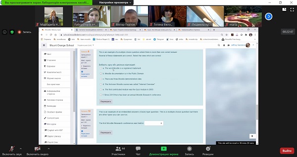 Учасникам вебінару було запропоновано протестувати платформу Moodle на демонстраційному сайті розробників програмного забезпечення (https://school.moodledemo.net). За допомогою цього сайту вдалося показати можливості платформи для організації дистанційного навчання та надихнути викладачів на створення привабливих сучасних інтерактивних навчальних курсів для студентів Національного авіаційного університету.