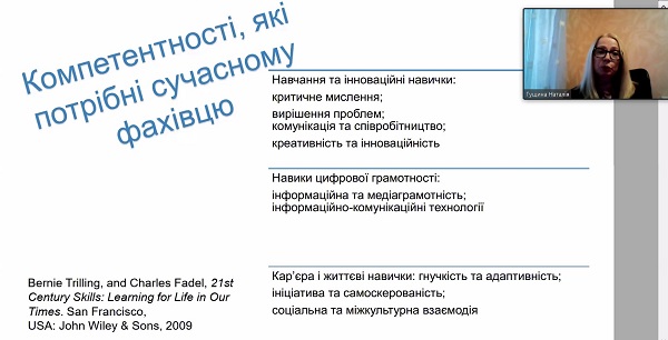 На заході виступили науковці: професор ННІНО НАУ Юрій Тесля; доценти кафедри відкритих освітніх систем та ІКТ, ДЗВО «Університет менеджменту освіти НАПН України» - Сергій Касьян, Лариса Ляхоцька, Наталія Гущина.